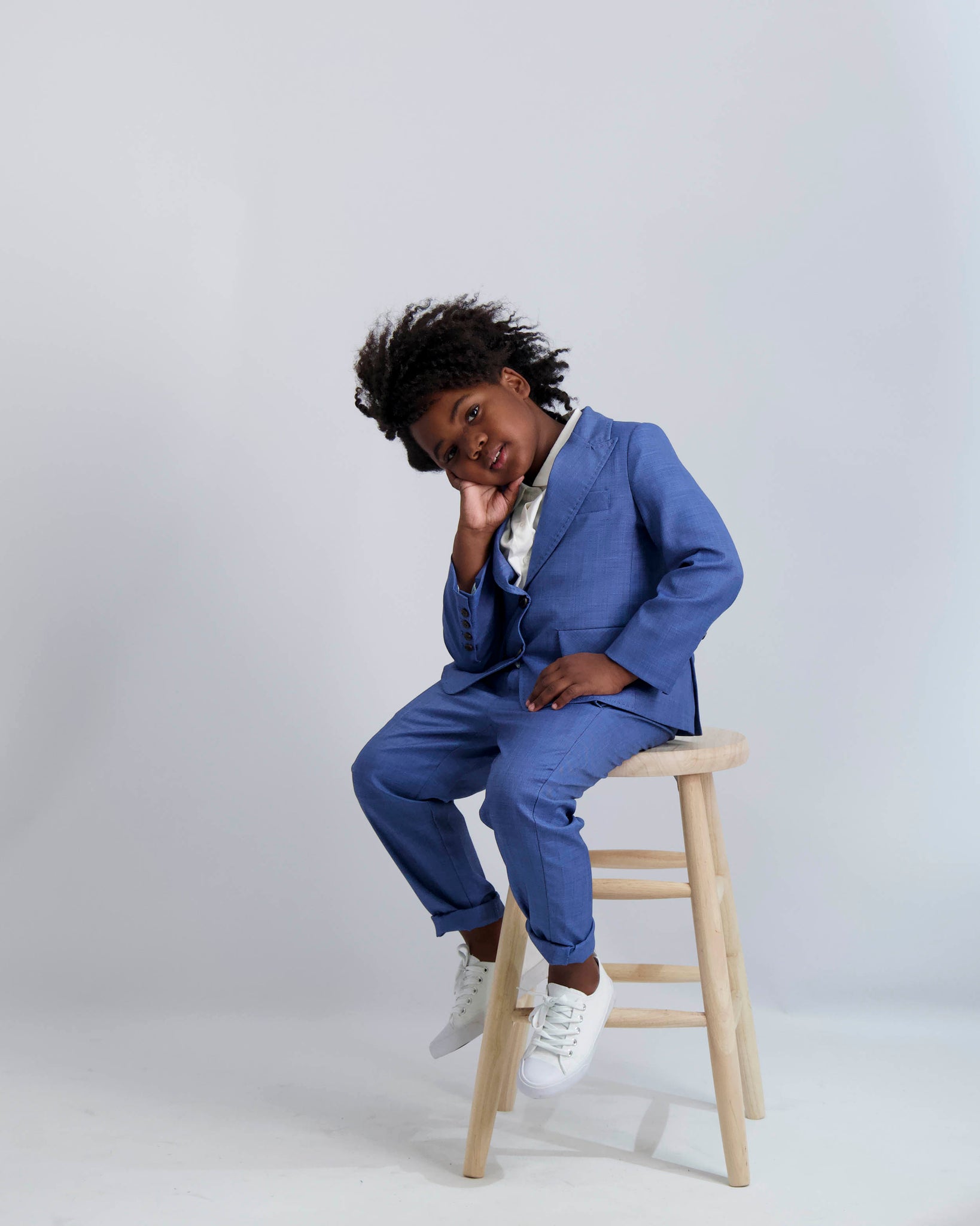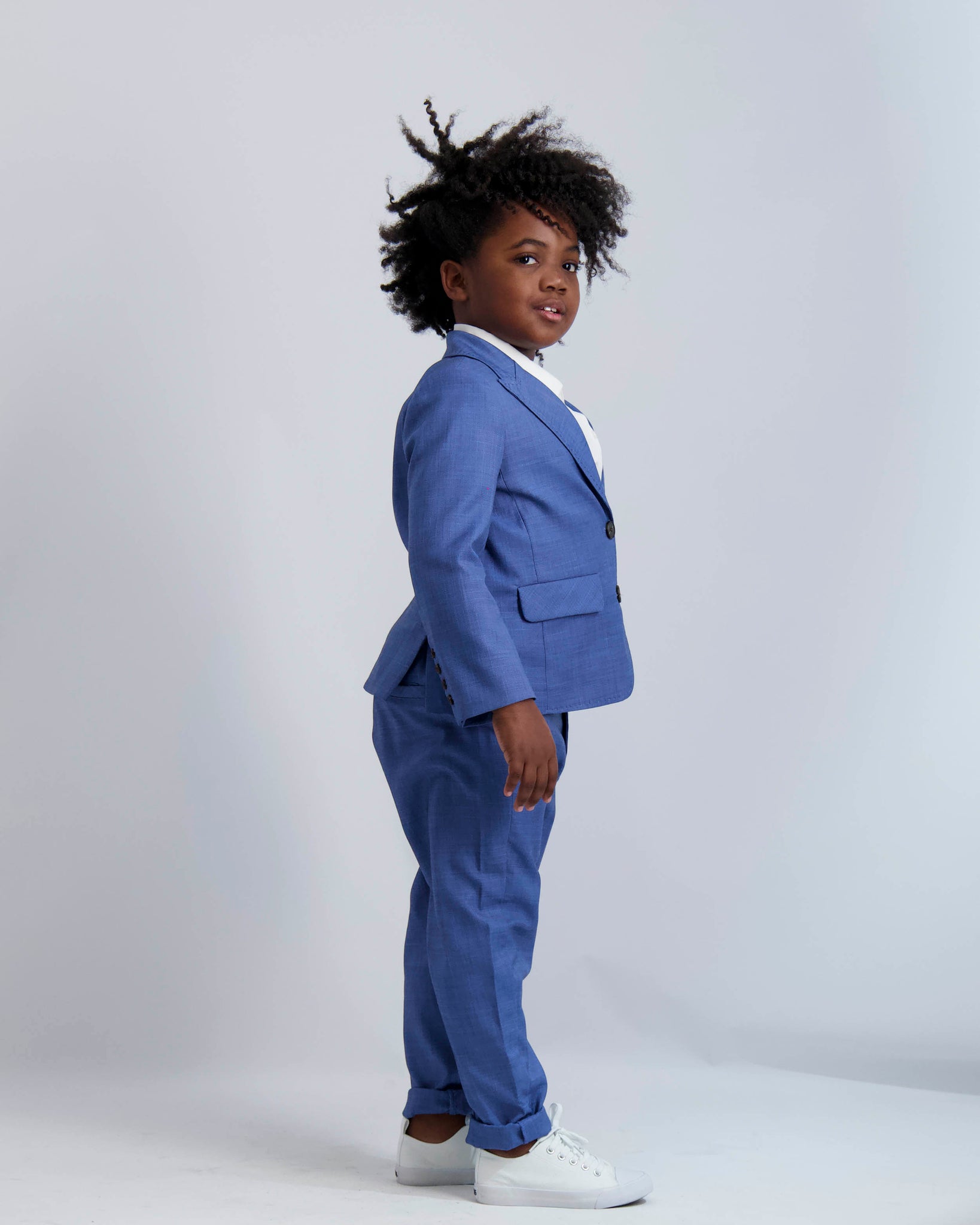 Our tailored Egyptian blue blazer for boys makes sure that every boy feels confident and comfortable for every occasion. Pair with our button dress shirt, matching dress pants or short dress pants for a formal look or wear with our casual shorts and collared sweater for a more laid back vibe. Wide sizes are 2 inches wider than regular sizes. See sizing chart for reference.