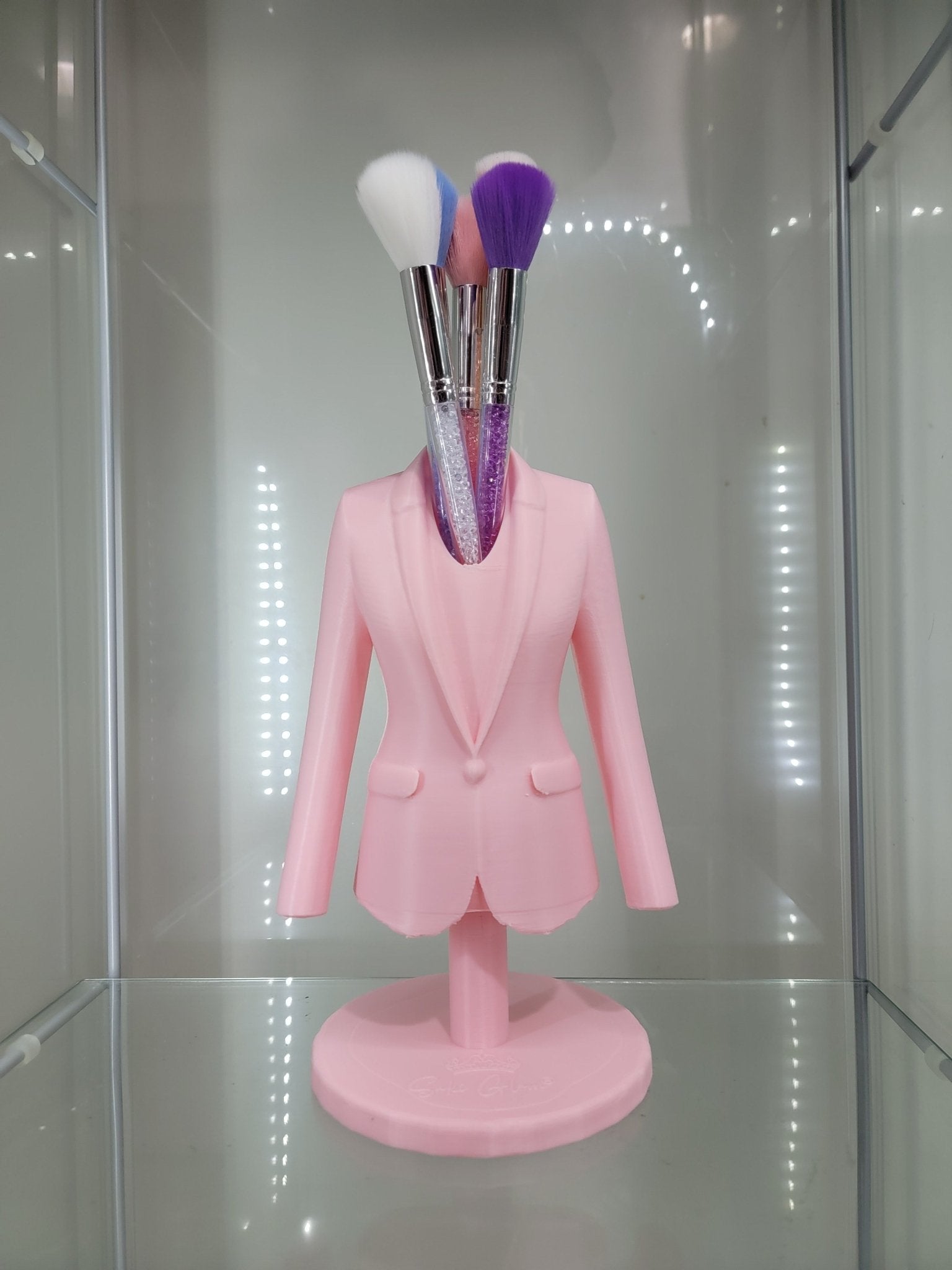 Add a touch of fashion to your vanity with this stylish pink blazer-shaped brush holder, crafted from eco-friendly PLA material!