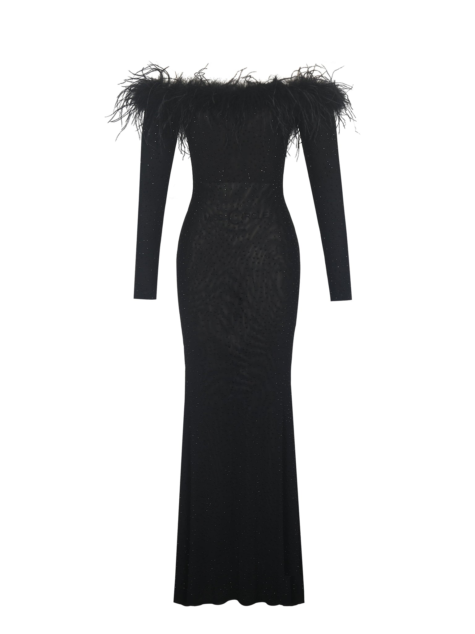 Introducing the Emberly Dress, where elegance meets a touch of midnight magic. Crafted from rhinestone-studded black mesh that shimmers like a constellation against the night sky, this off-shoulder silhouette is finished with plush fur trim for a luxe, wintry edge. Long sleeves balance the bodycon fit, while a slight mermaid hem lends graceful movement. Lined in mesh for comfort and finished with an invisible back zipper, it’s a study in quiet drama and refined sparkle. Perfect for holiday galas, rooftop soirées, or any night meant to shine softly yet unforgettable, the Emberly Dress makes every entrance feel like starlight.