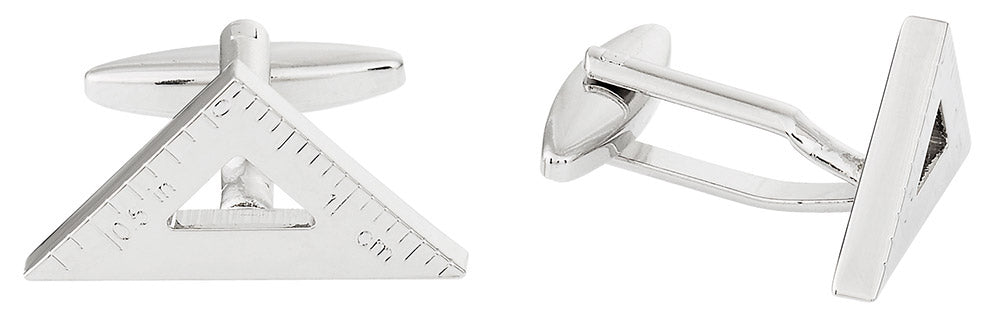 If you loved and bought a pair of our ruler cufflinks, then this pair is also a must-have. Designed to replicate a right triangle rule, these rhodium silver cufflinks are perfect gift ideas to an engineer or an architect. The triangle design is enough to give a suit its aura of sophistication, the shiny silver polish adds charm and appeal of a successful builder. If you're an engineer yourself, this item is a must have, perfect to be worn with a suit for a presentation. Who knows, it might even help you make a great frist impression!