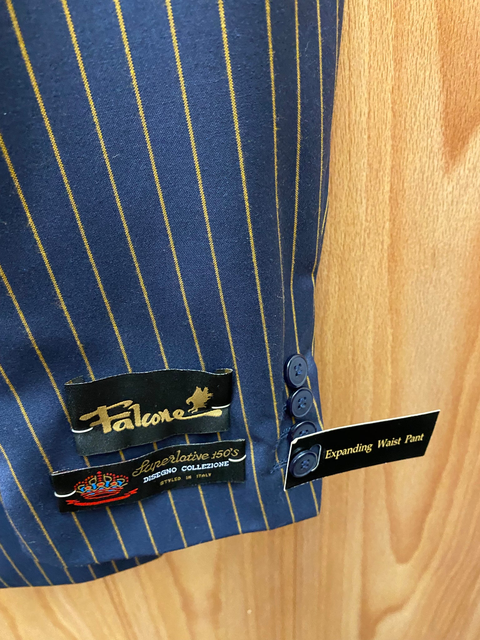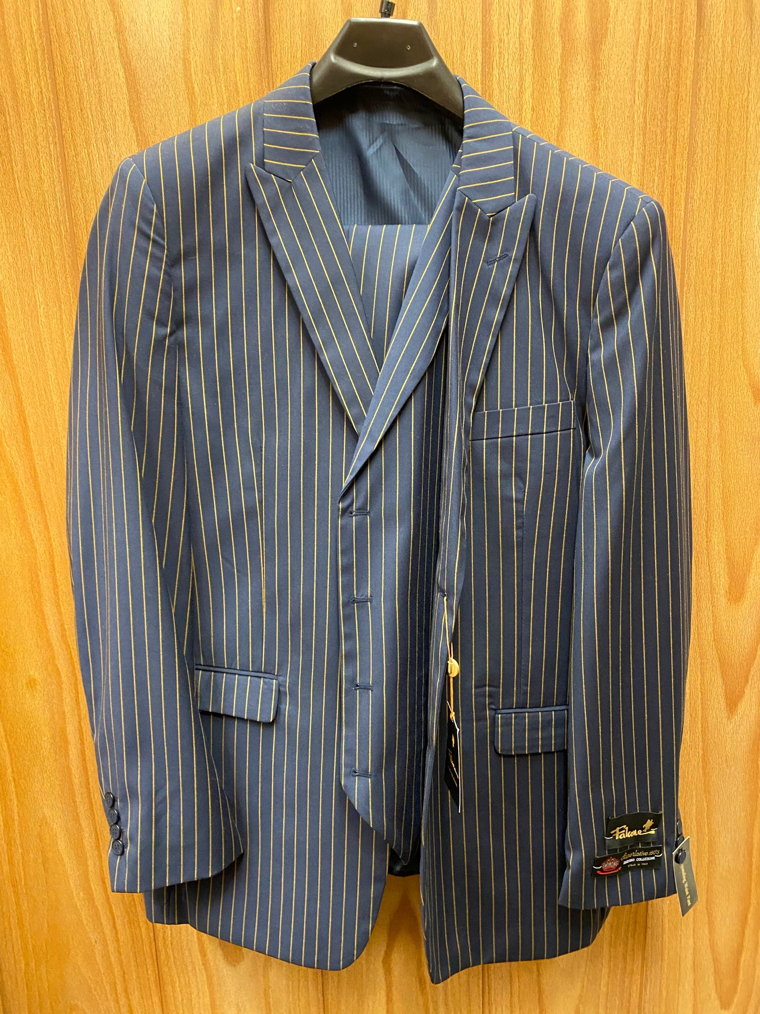 Falcone Navy with gold pinstripes 3-piece suit 44L