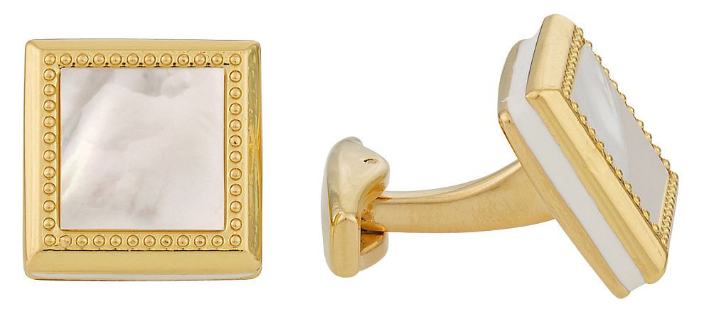 It is sometimes a challenge to find a nice set of gold mother of pearl cufflinks in square. These definitely fit the bill and feature a white enamel highlight around the perimeter. Just another touch to let your links stand out from the rest. These cufflinks arrive in a handsome gift box like all of our designs.