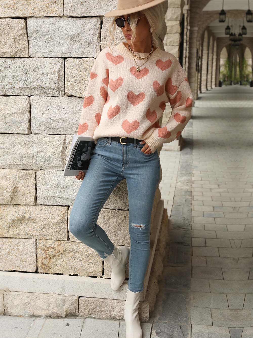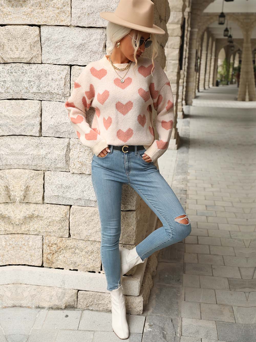 This sweater features an adorable heart pattern, giving off a sweet, girlish vibe. The thick material ensures warmth, keeping you cozy in chilly weather. It's also suitable for Christmas and can be worn as an ugly Christmas sweater.