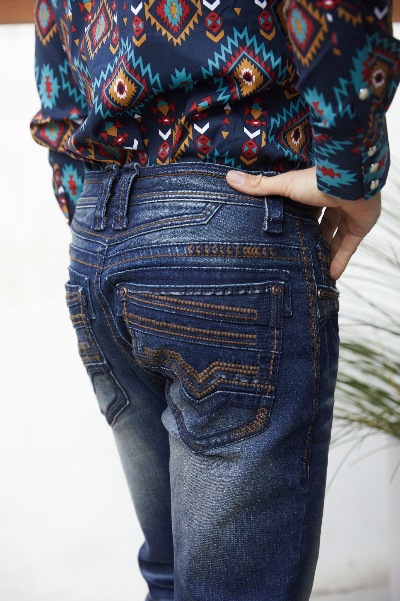 How to Wear: Pair these Platini Holt Slim Boot-Cut Jeans with a classic western shirt and cowboy boots for an authentic cowboy look. Alternatively, style them with a graphic tee and sneakers for a casual yet rugged vibe. Whether you're riding the range or heading out for a night on the town, these versatile jeans will keep you looking and feeling your best.