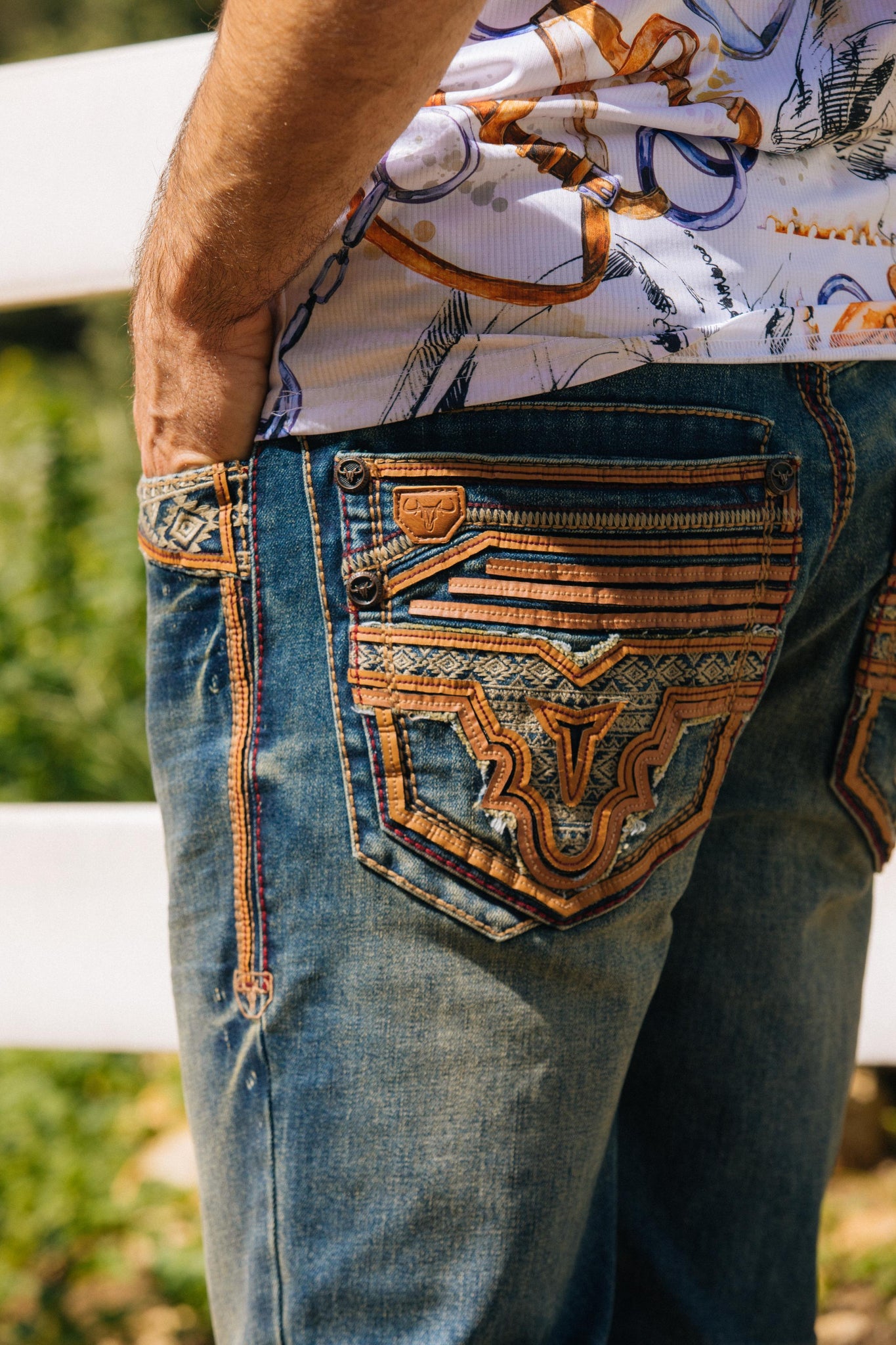 How to Wear: Pair these Platini Holt Slim Boot-Cut Jeans with a classic western shirt and cowboy boots for an authentic cowboy look. Alternatively, style them with a graphic tee and sneakers for a casual yet rugged vibe. Whether you're riding the range or heading out for a night on the town, these versatile jeans will keep you looking and feeling your best.
