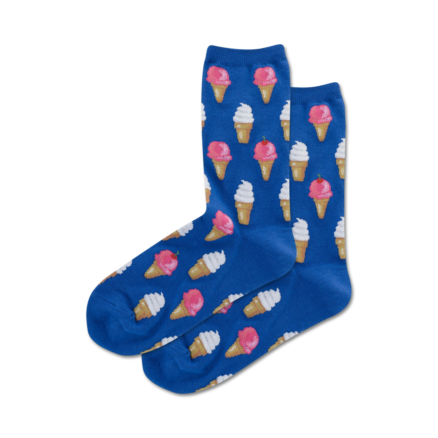 Kick your feet up and enjoy a scoop of sweetness with our Ice Cream Novelty Socks. With a vibrant blue background and popsicles dripping with creamy white ice cream and pink frosting, these socks are a surefire treat for your feet. You'd be absolutely bonkers not to sport these tasty socks. These women's socks come in a crew length, so they're perfect for showing off while lounging at home, taking a stroll in the park, or indulging in a scoop of your favorite flavor.