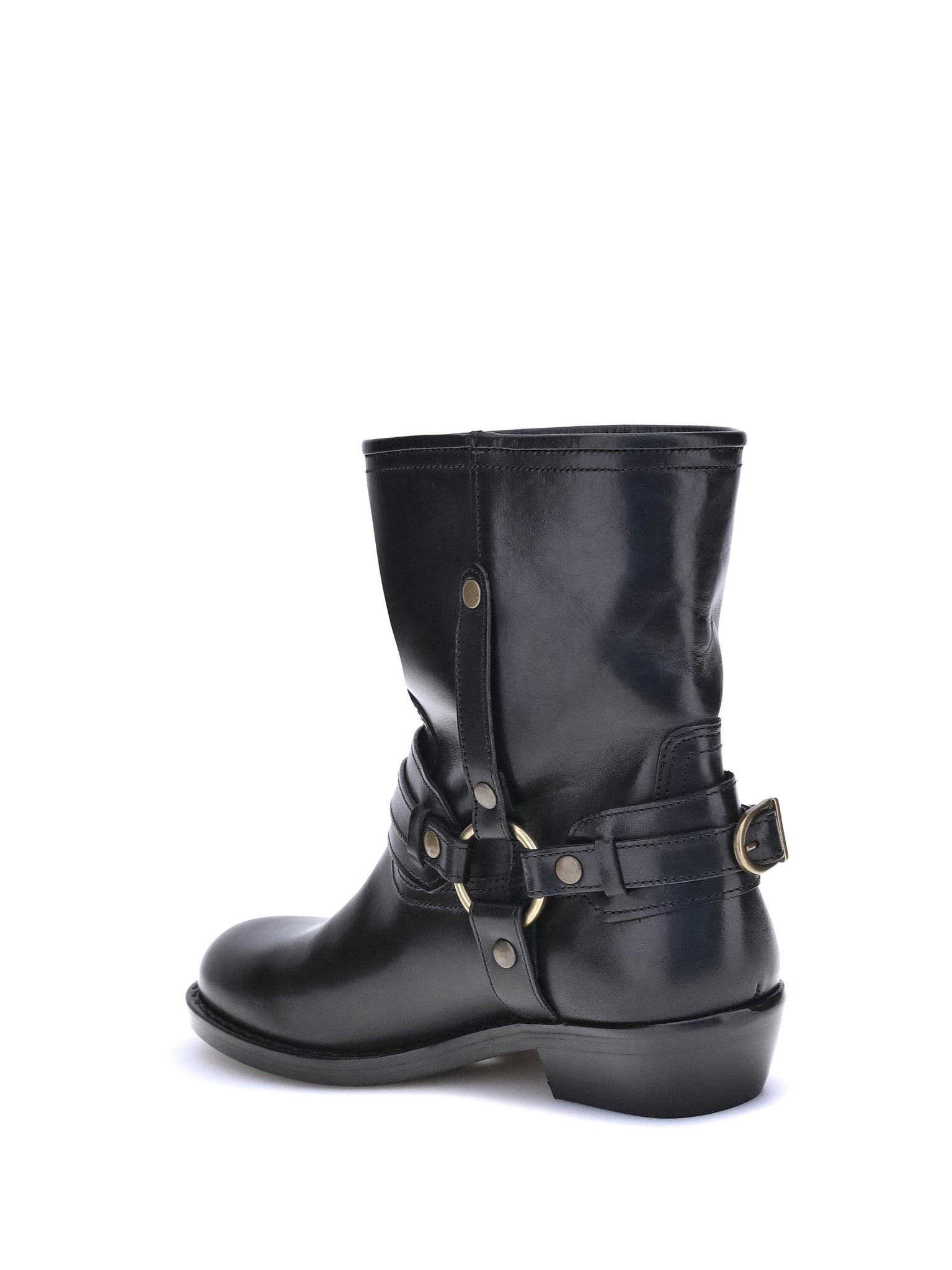 Isabel Marant's Heiko leather Ankle Boots are a sleek slip-on style with a round toe and a leather block heel that adds stability and style. The decorative buckle detail around the ankle adds a distinctive touch, making these boots a versatile and sophisticated accessory, perfect for any occasion.