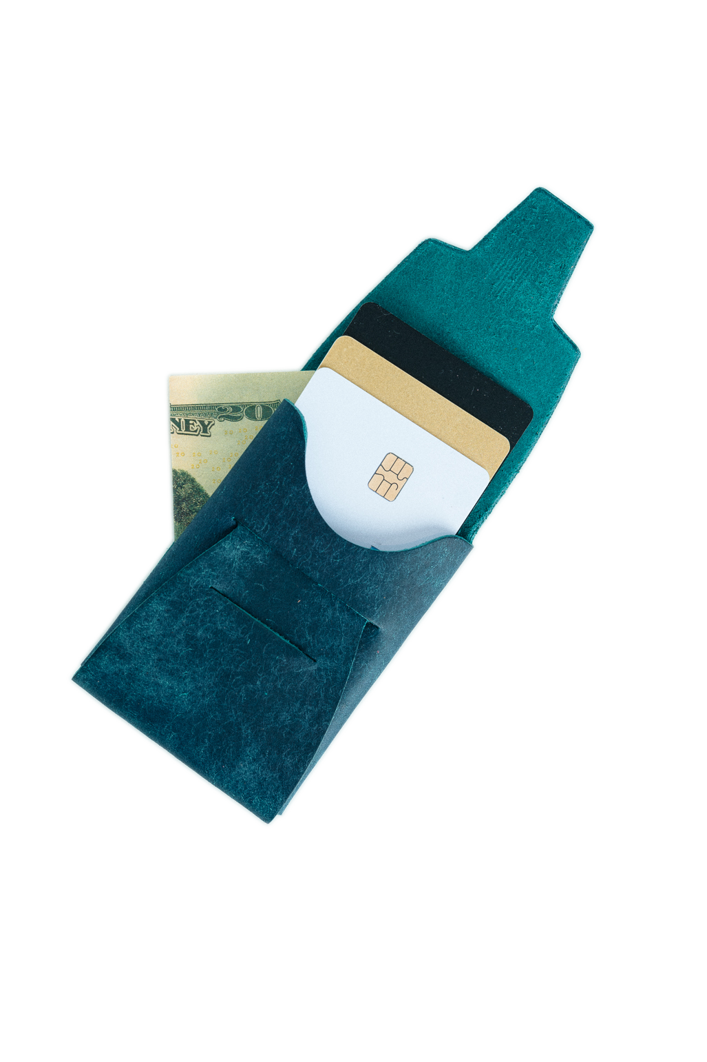 - Two pockets: 1 for cards. 1 for twice-folded cash.