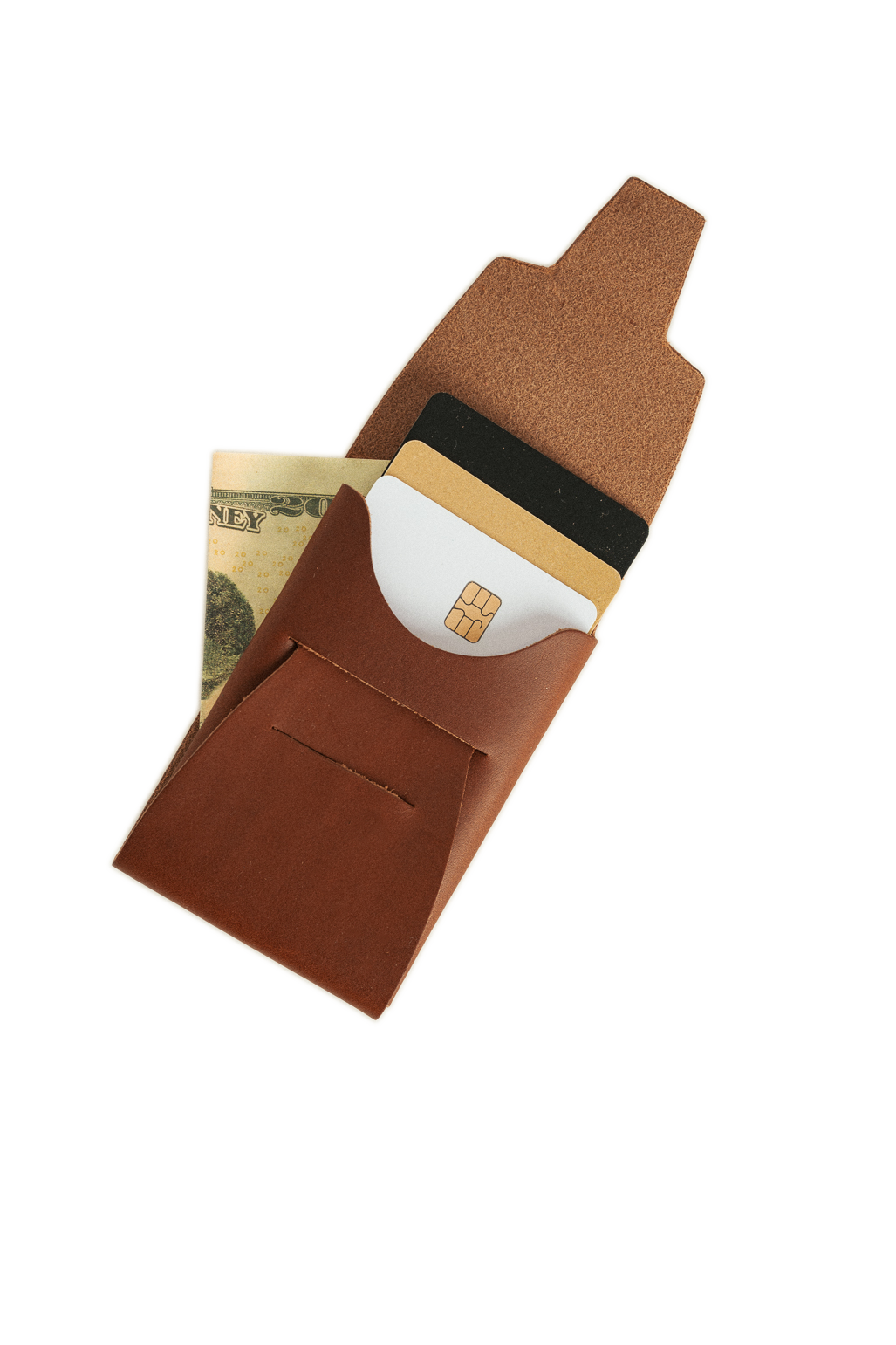 With a pocket for cards (up to 6-8 easily!), and a simple divider for twice-folded cash, receipts, or a quick-draw card pocket, the Johnny Wallet folds into itself, and holds everything you need with no frills.