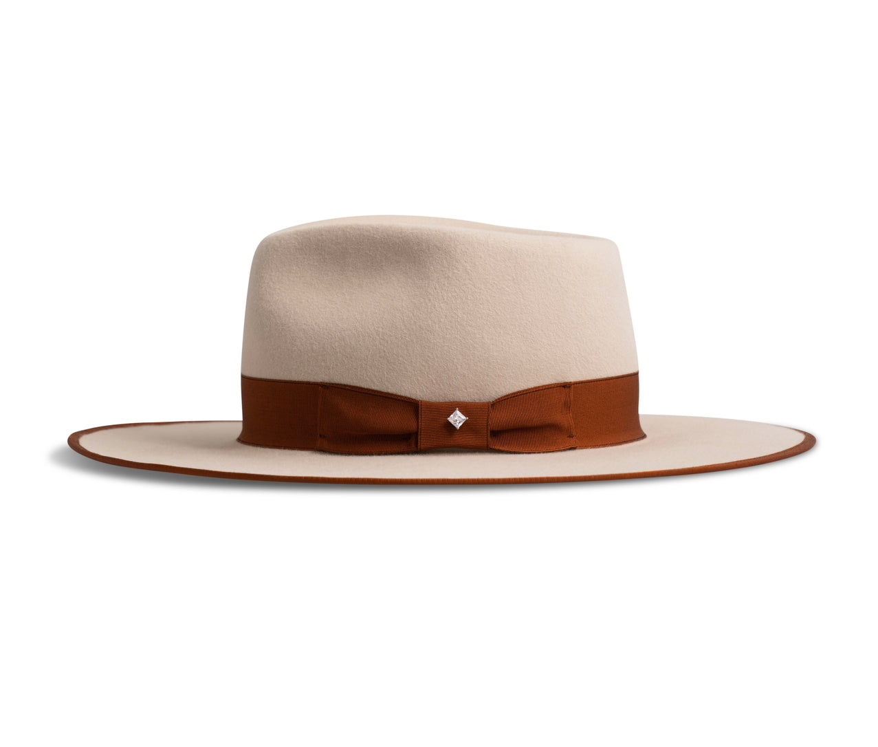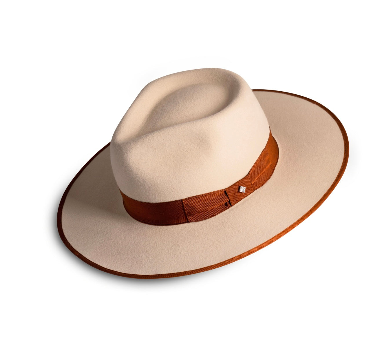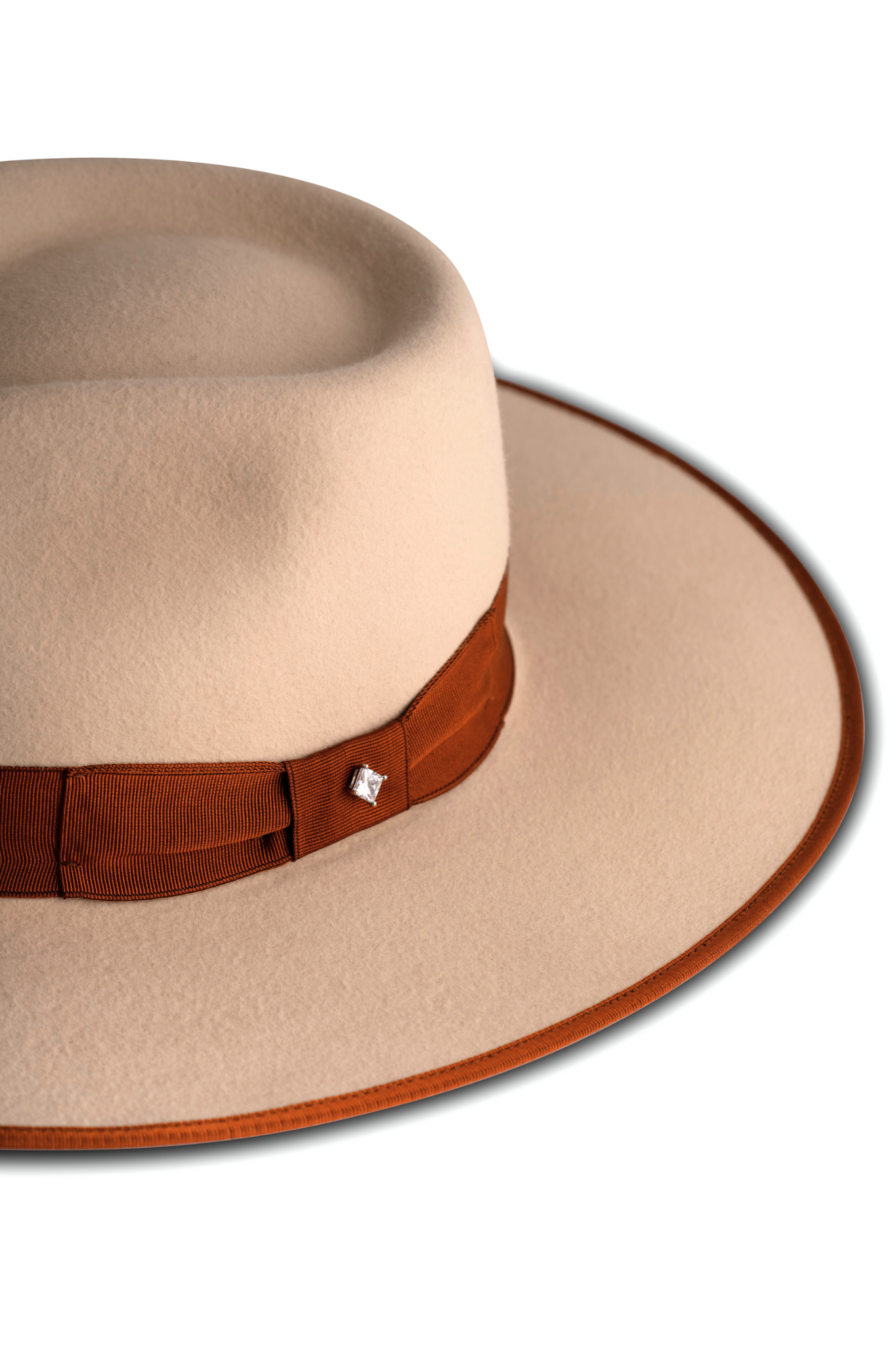 The Silverbelly Stud is made with 100% American beaver felt, giving a soft texture and gorgeous sheen. The distinctive style is accented by a large, 4 3/4" teardrop crown and 3 1/2" flat brim. Regardless of the color options you choose, the Silverbelly Stud can be identified by the signature sparkling stud featured in the middle of the ribbon.