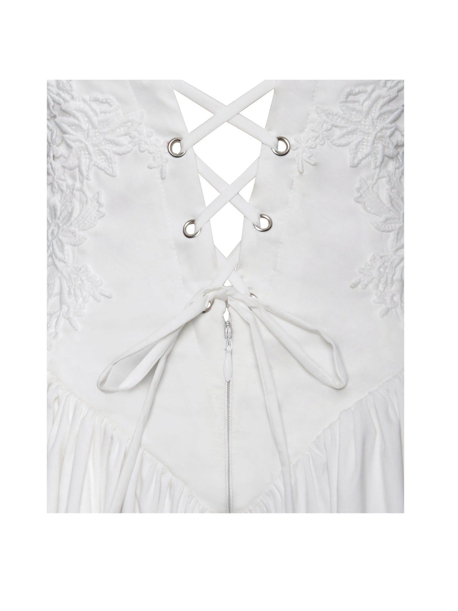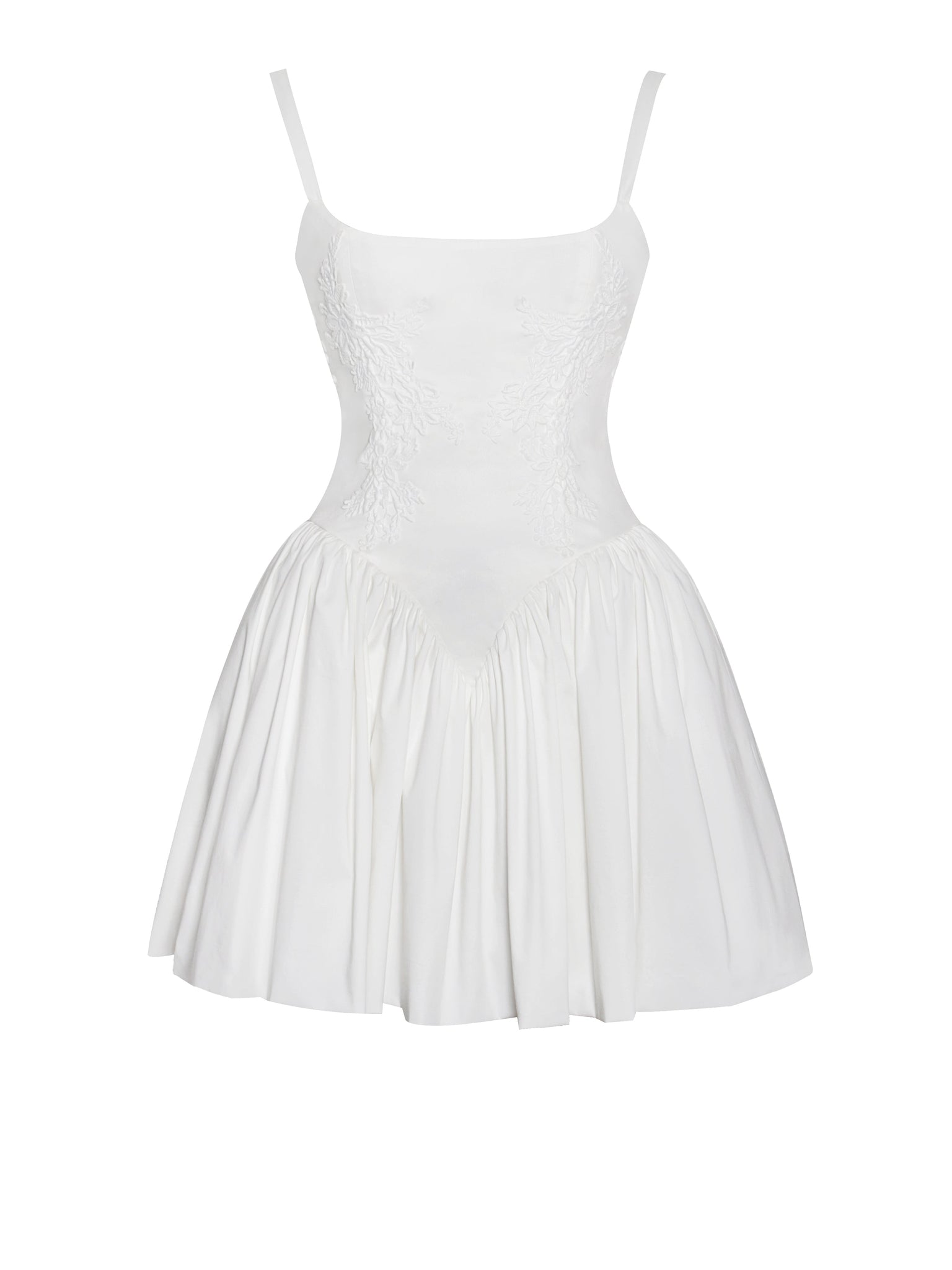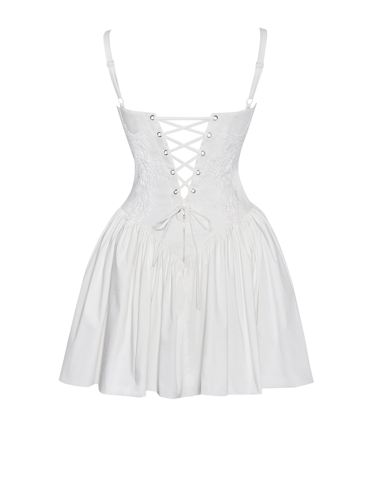 Introducing the alluring Kadi White Cotton Corset Mini Dress, a delightful addition to your wardrobe. Crafted from crisp low stretch eco-luxe Cotton Poplin, this mini dress exudes casual elegance. Delicate lace detailing adorns the garment, adding a touch of charm. The V-shaped waistline and the built-in bones accentuates your figure, while the lace-up back and adjustable stripes ensures a perfect fit. With invisible pockets and mesh bustle inside seamlessly integrated into the design, this dress offers both style and functionality. Available in a stunning white option, this dress offers versatility for any occasion, whether it's a daytime outing or a night on the town.