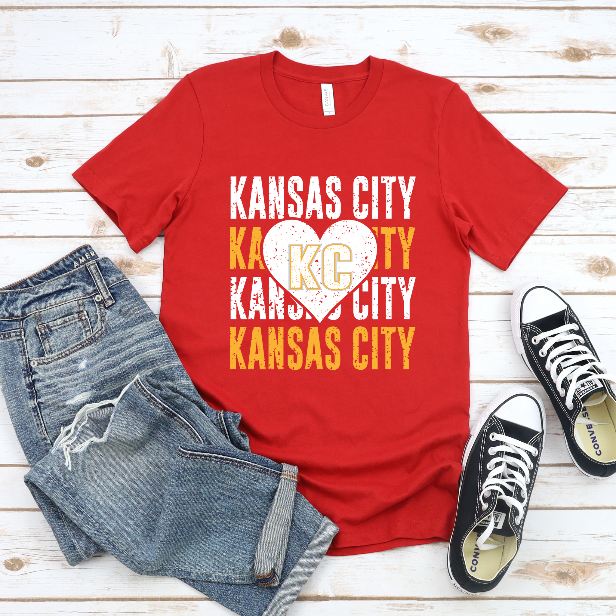 Kansas City Repeat Heart Grunge Tee OR Sweatshirt