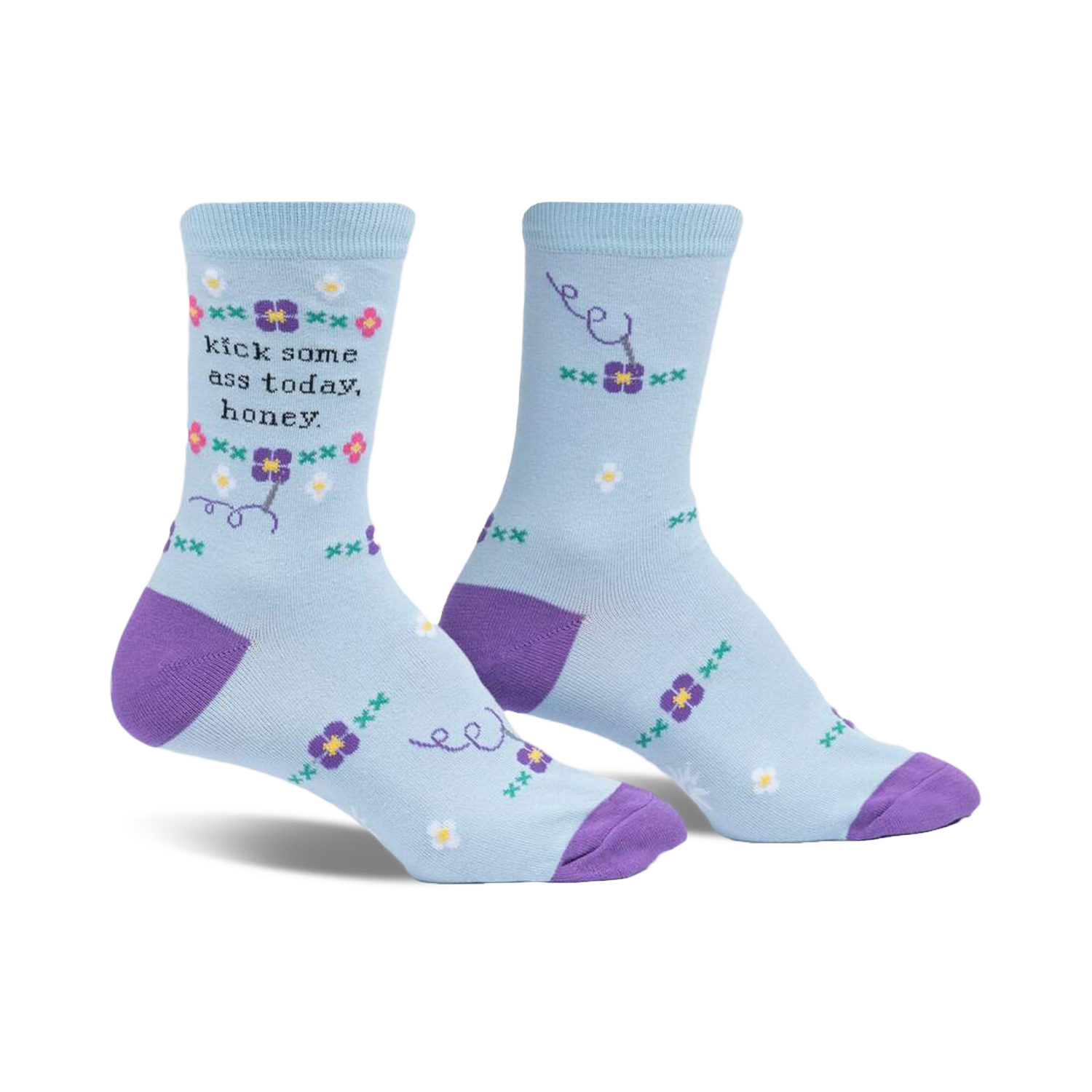 Sometimes, you wake up and just need a reminder to show the world what it means to be powerful. A reminder to kick some ass today. With a gorgeous blue and purple aesthetic, these socks will remind you to go forth and kick ass, honey.
