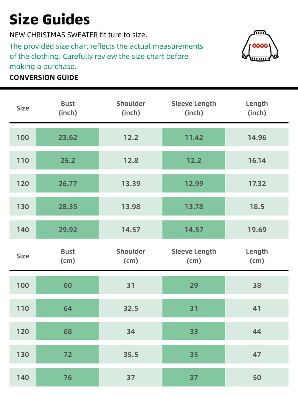 Check the Size Chart: The provided size chart reflects the actual measurements of the clothing. Carefully review the size chart before making a purchase.