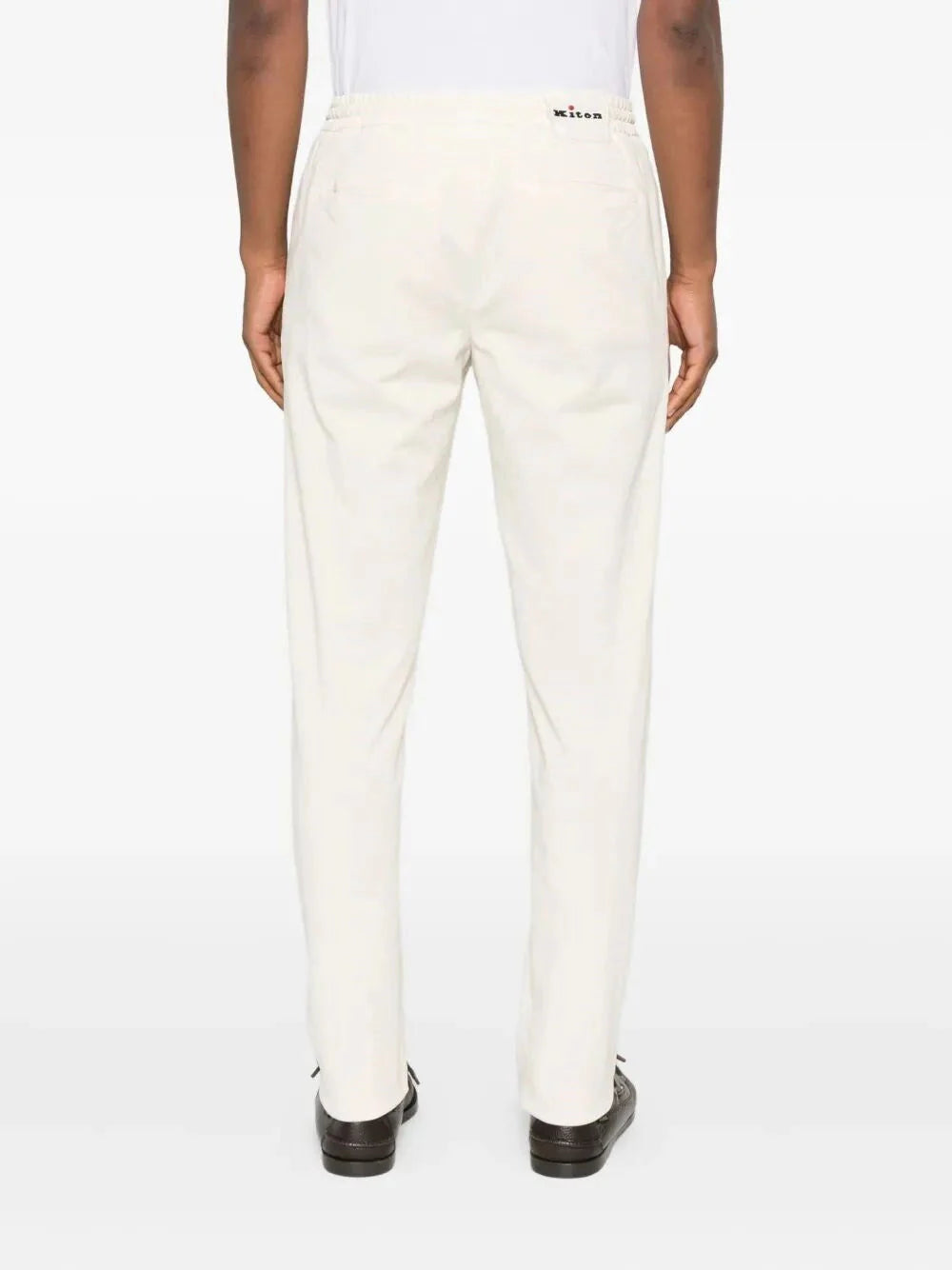 `Ivorywhite pleatedfront buttonclosure straight-leg mid-risewaist`