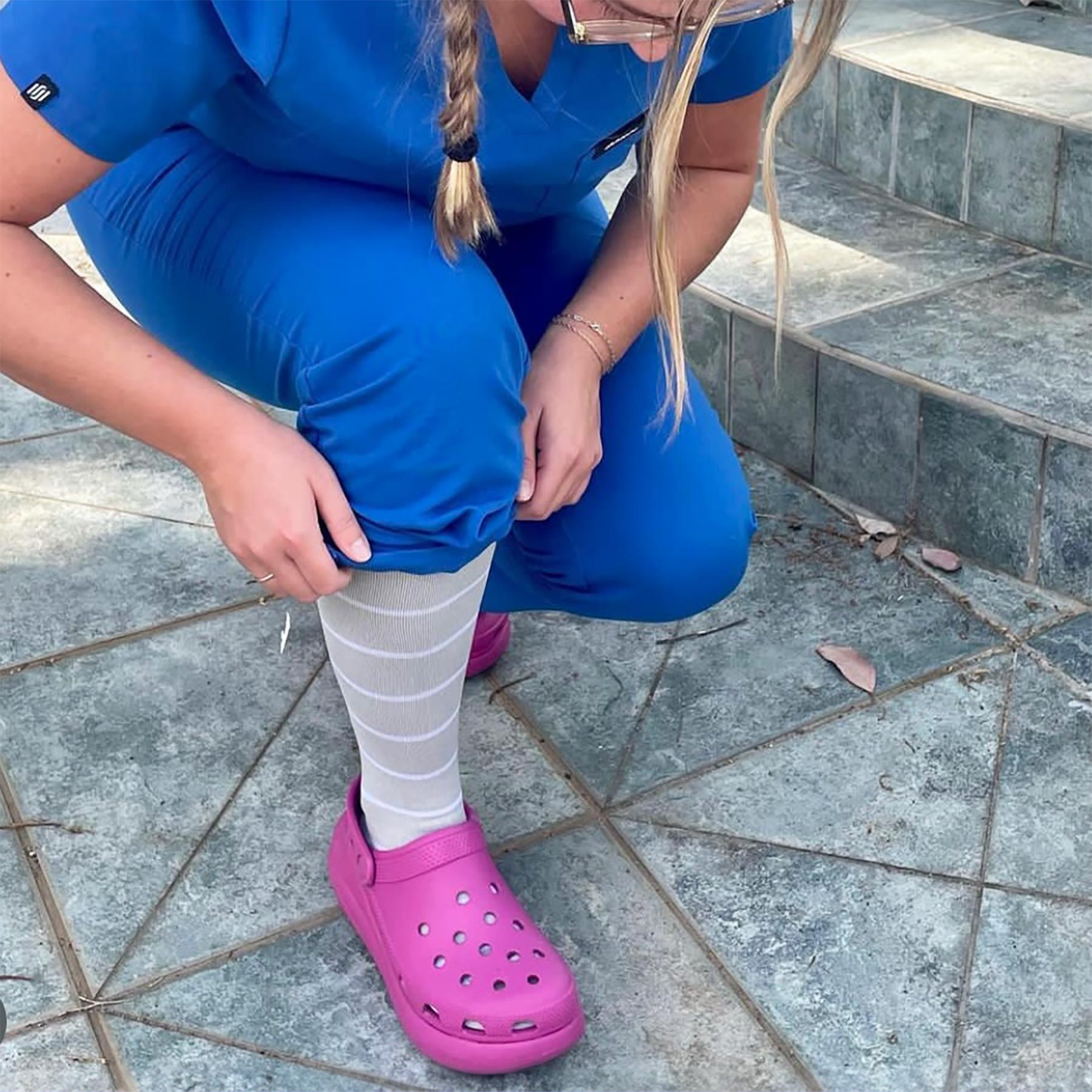 Meet socks with benefits- Our companions have a mild level of true graduated compression socks designed to help improve leg & foot comfort. Made with moisture-wicking nylon, magically thin and breathable fibers that contour to the leg. Also made with SmartSilver Ions , to help prevent odor.