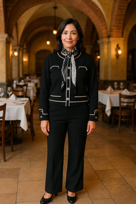 Knit Tailored Ensemble Cardigan & Wide Leg Pants Set with Scarf