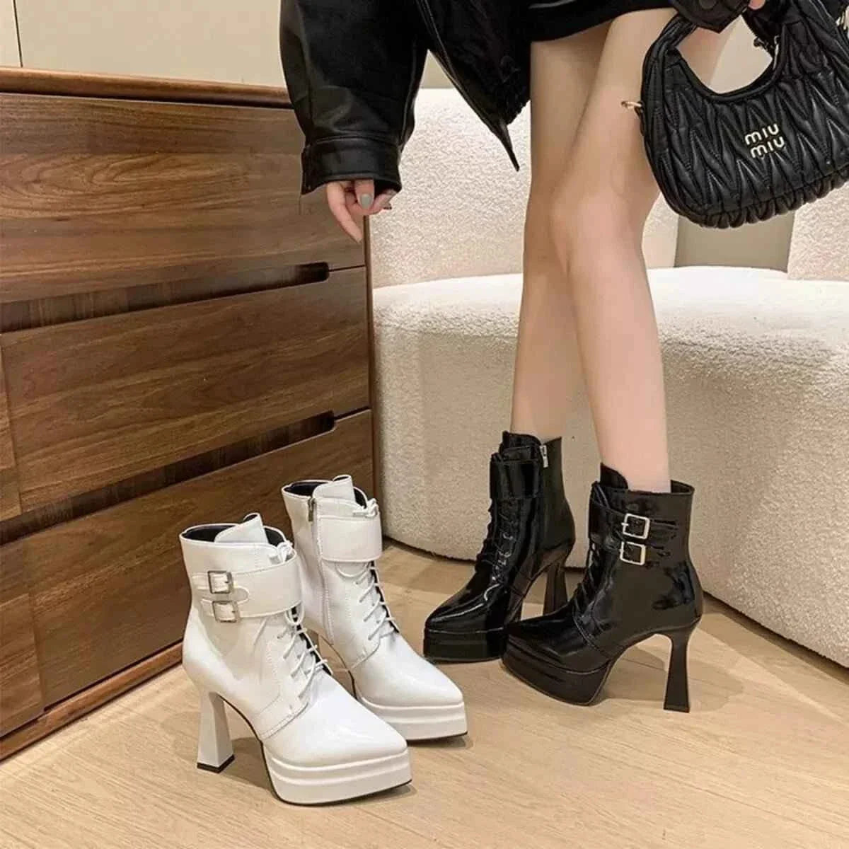 Elevate your look with the chunky heel on these ankle boots, providing both style and stability. The chunky heel adds a modern touch to the classic ankle boot silhouette, making them a must-have addition to your shoe collection. Walk confidently in these comfortable ankle boots with just the right amount of height.