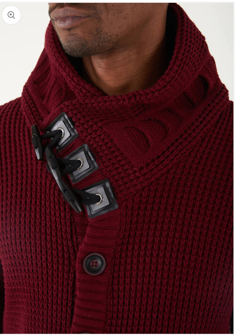 Lagos Red Men's Burgundy Button Up Sweater | Solid Striped