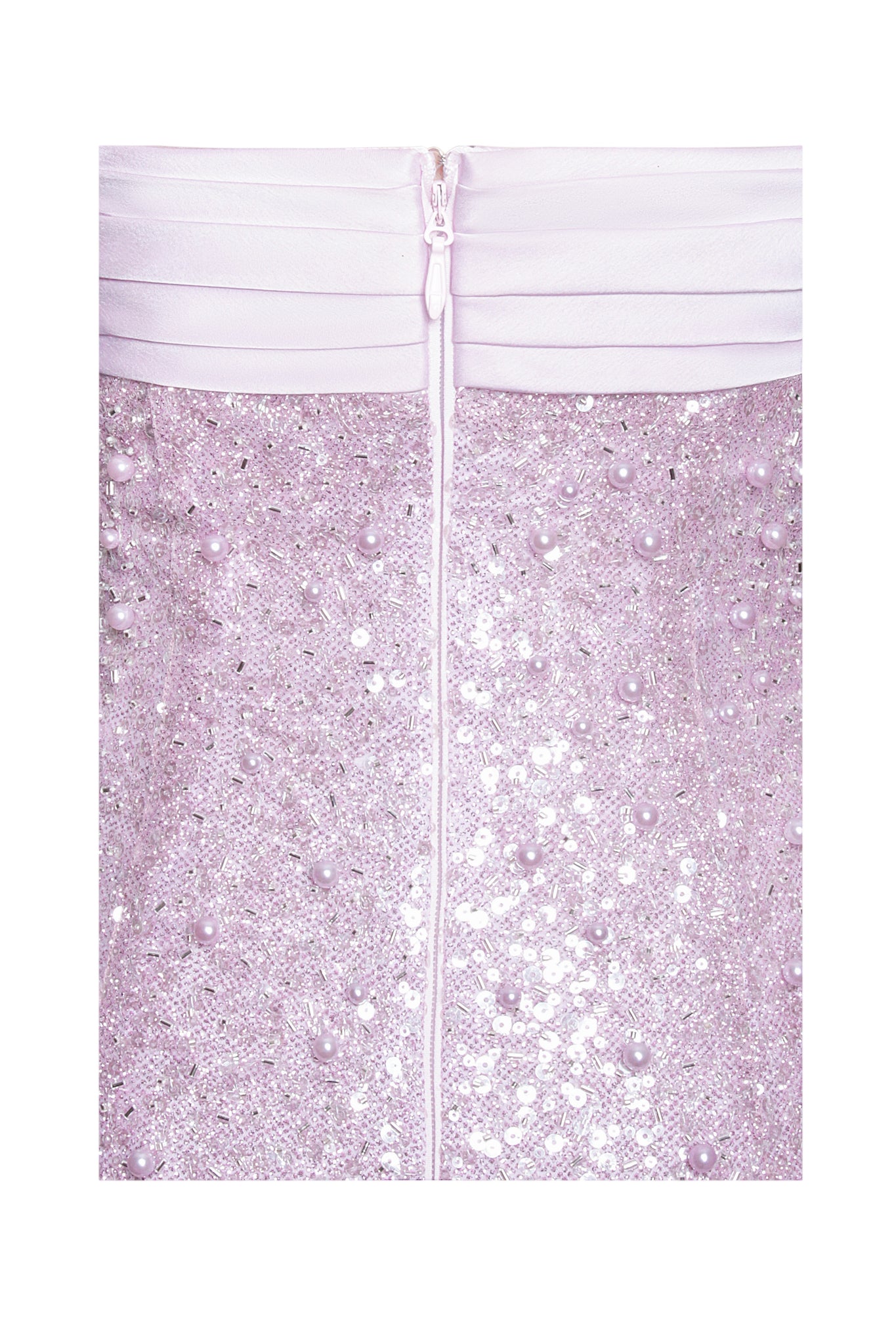 - Materials: Sequin & Pearl Beaded Mesh, Double Duchess Luxe Satin