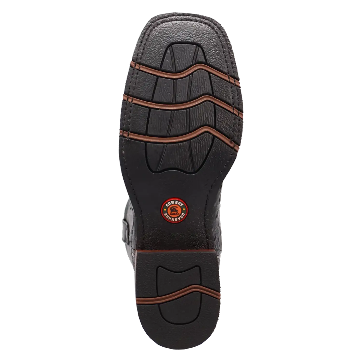 Designed for lasting comfort, it has a broad square toe and 1” heel for stability, while the comfy removable orthotic insole provides all-day support. The Cowboy Approved II rubber outsole ensures dependable traction on any terrain.
