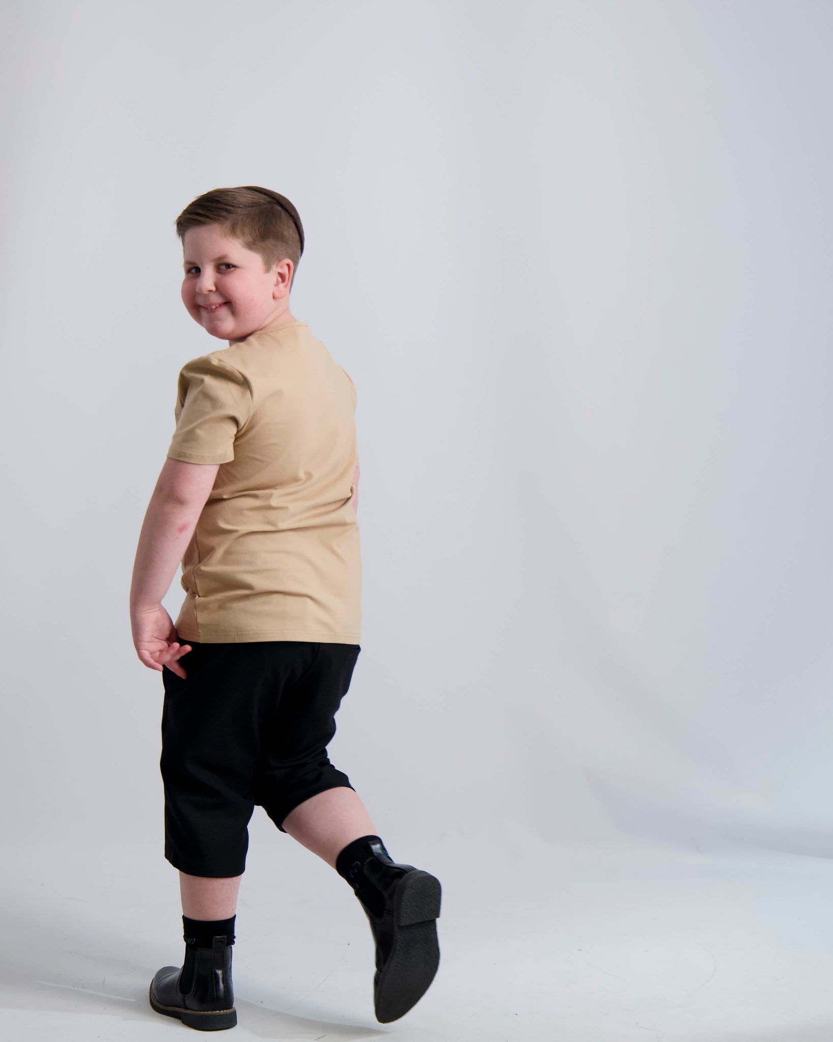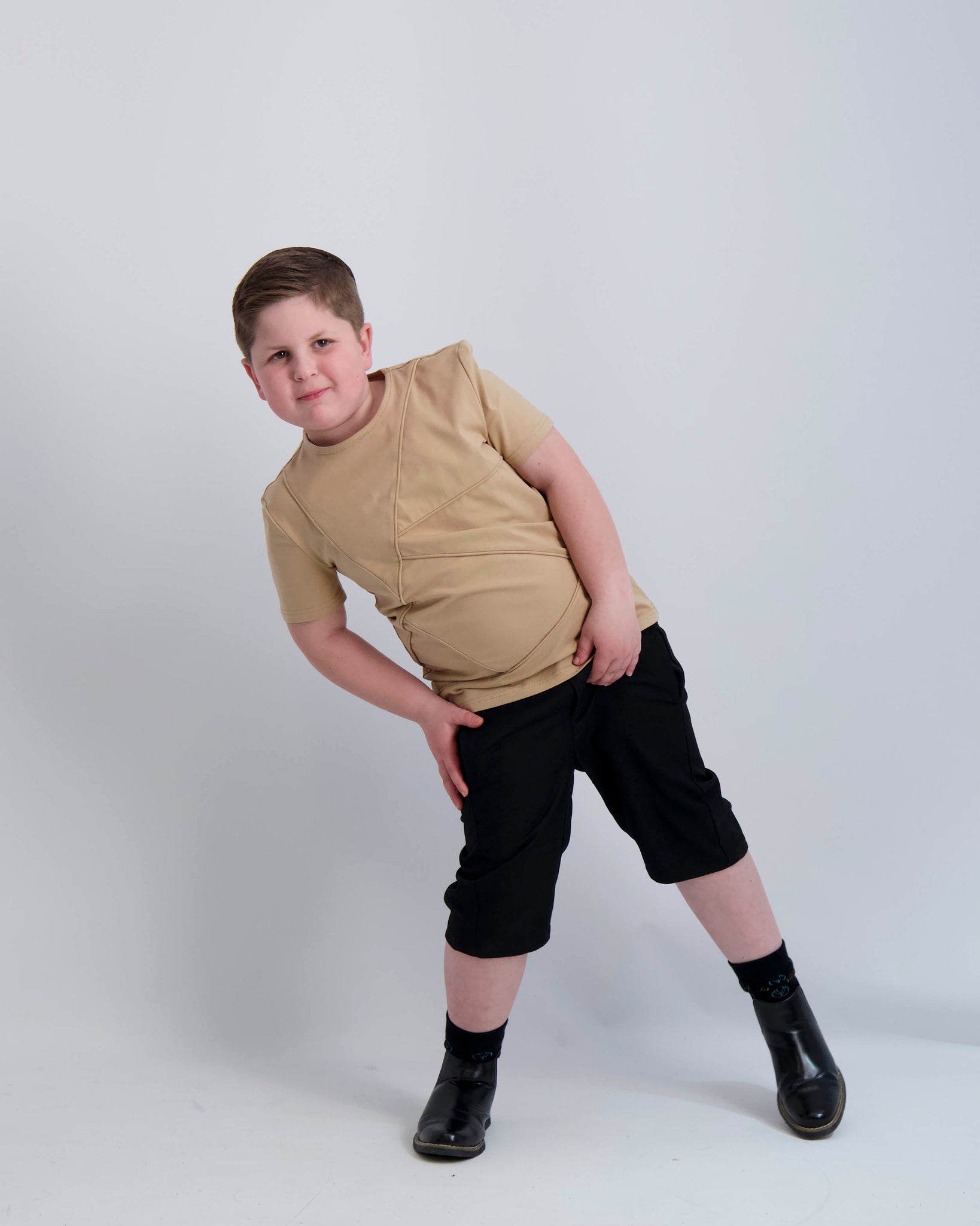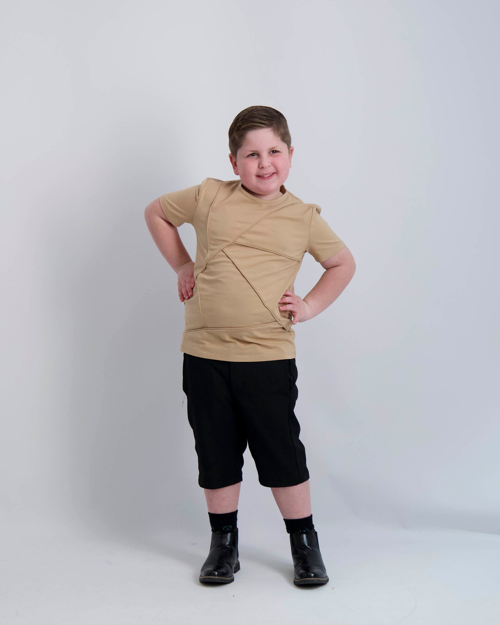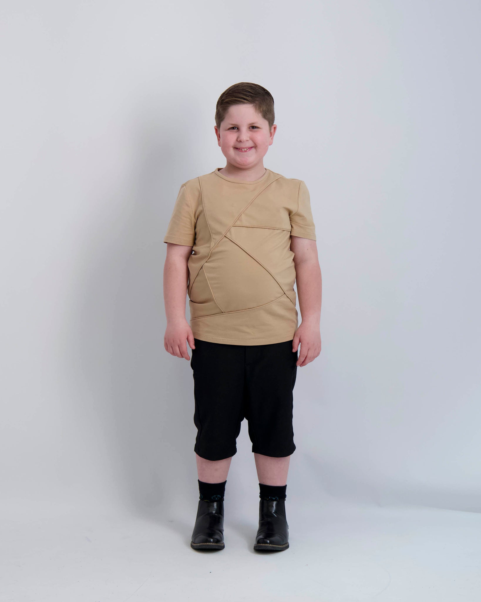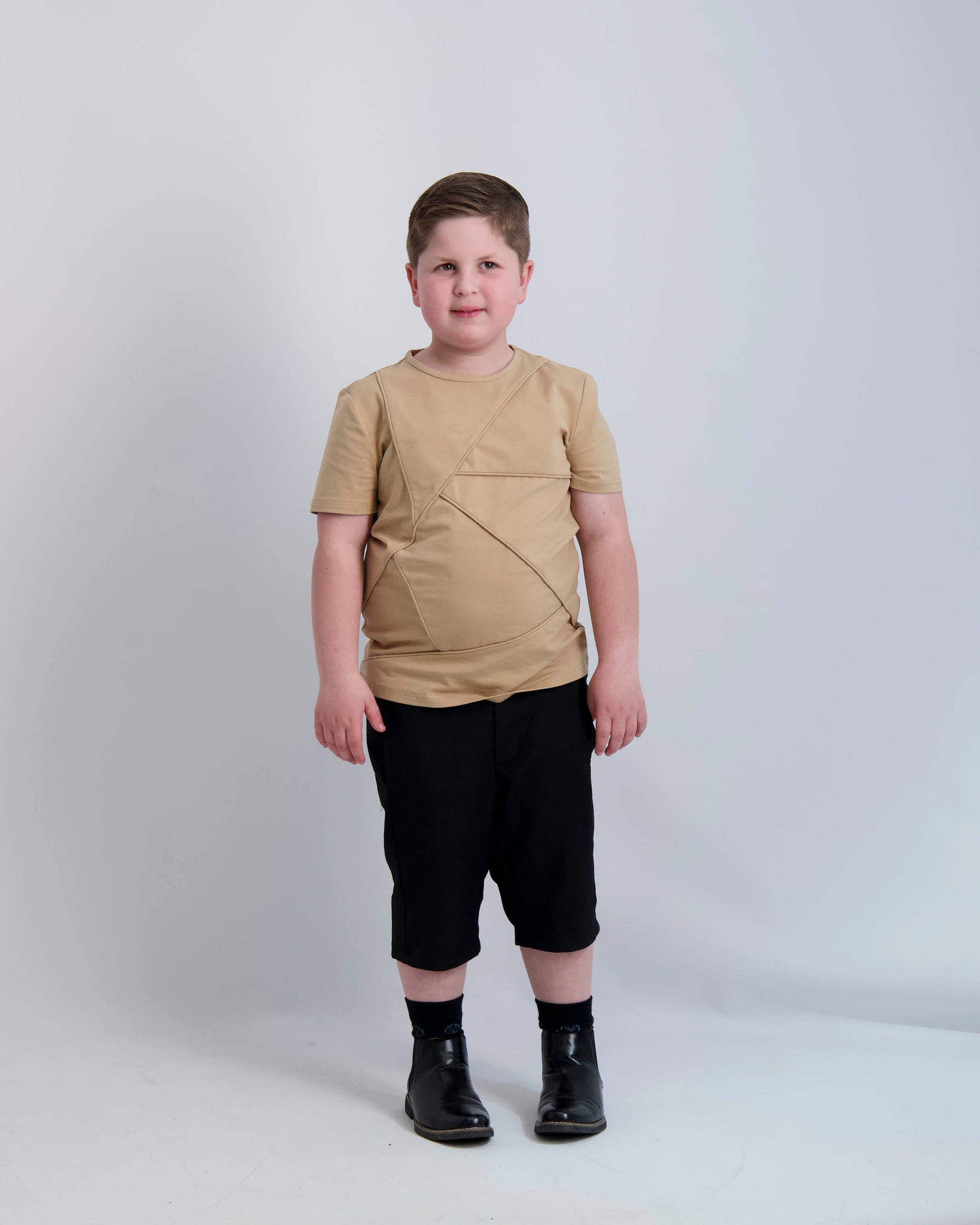 Our latte piping top is made from a cotton/spandex blend for a comfortable fit with a little stretch. The triangular abstract piping detail on this top makes it a staple in your wardrobe.