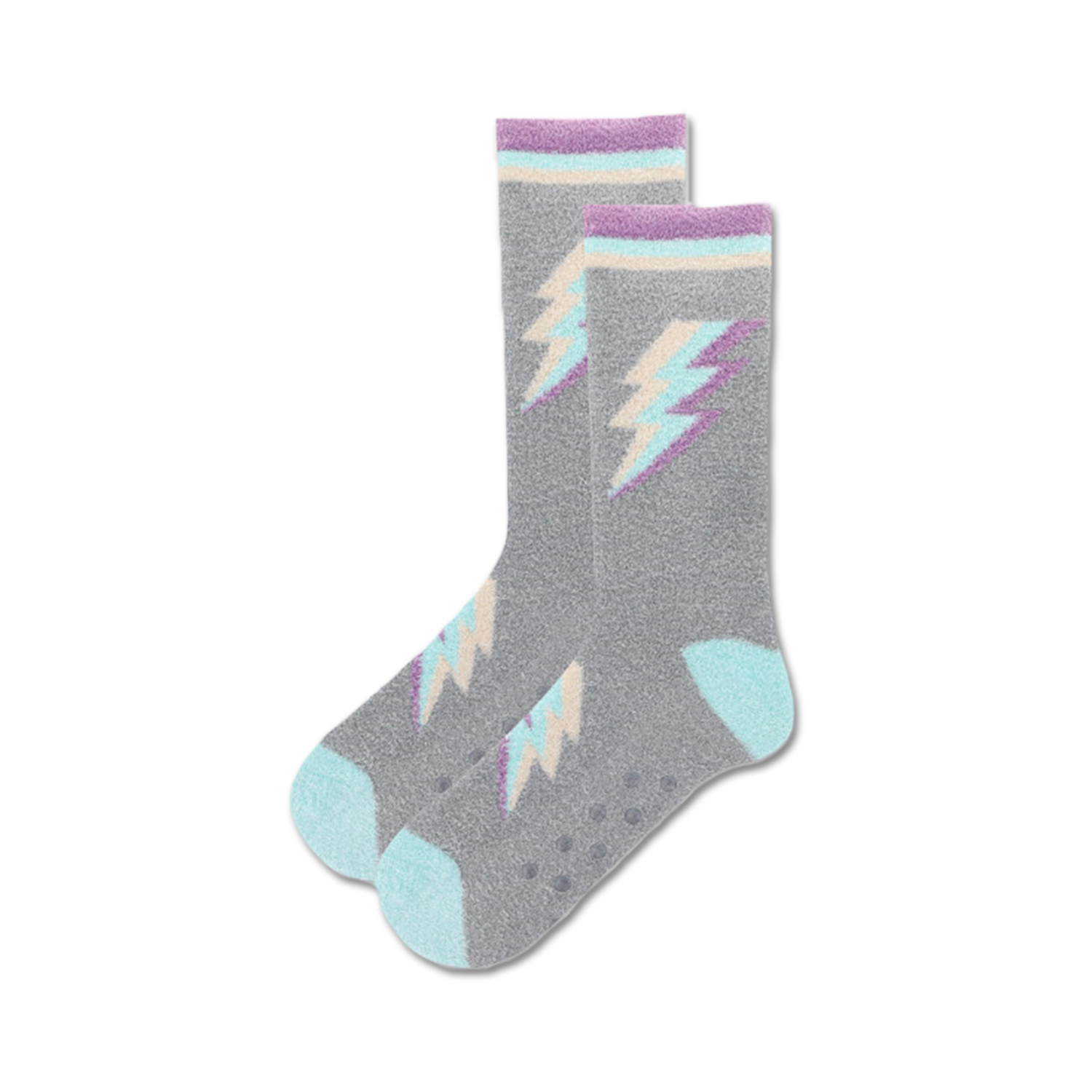 ZAP! Sock lightning strikes twice. And it won't hurt a bit. These zesty pink and blue zig-zags will have you looking shockingly good. Non-skid, so you can strike a pose without losing your footing.