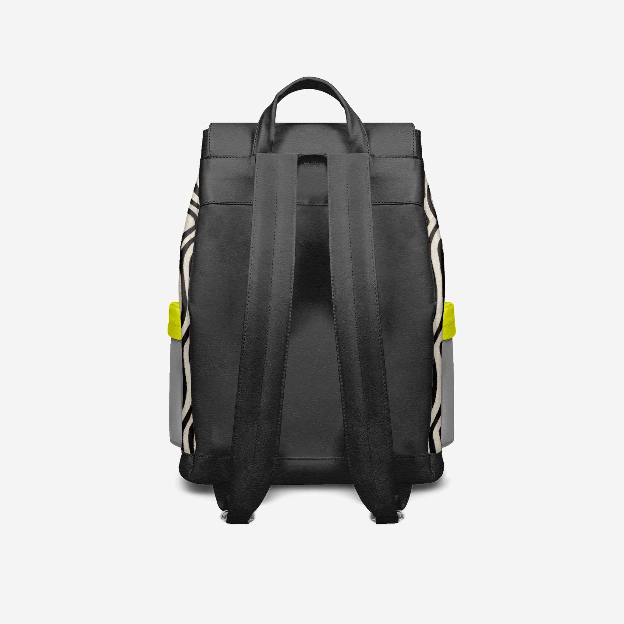 Meet the SOHO VIBE backpack by BYMANYC ® New York — where urban jungle meets high-fashion jungle. Crafted in Italy with cruelty-free materials, this bold luxury piece fuses electric lime details, zebra-inspired patterns, and sleek gray panels for a backpack that turns heads in every borough.