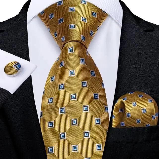 - MATERIAL AND CRAFT- necktie and pocket square are made from Silk. 2000 stitches jacquard woven craft, high-density fabric makes the tie non-deformed and soft with a genuine look and feel.