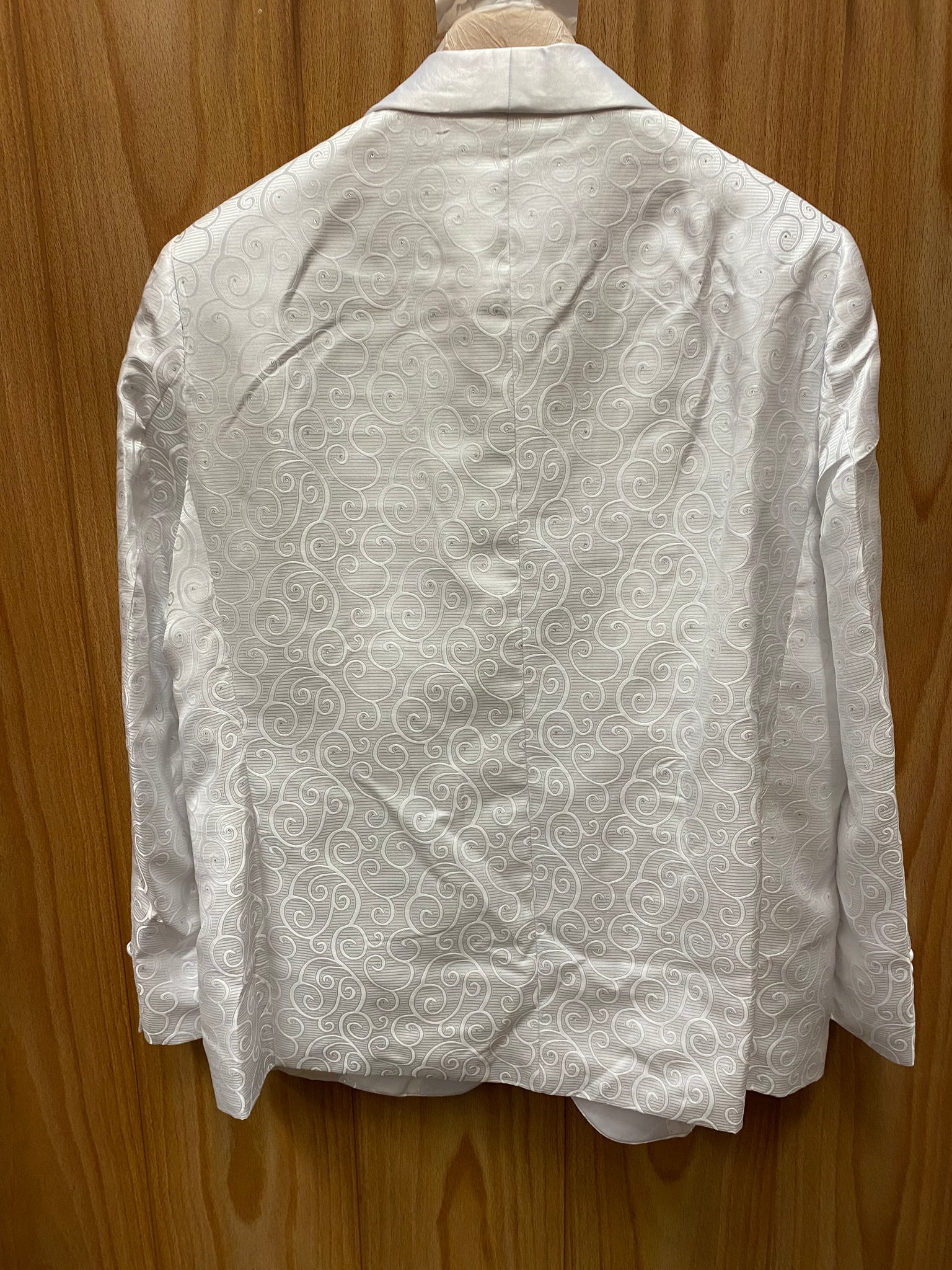 • shinny white shawl collar