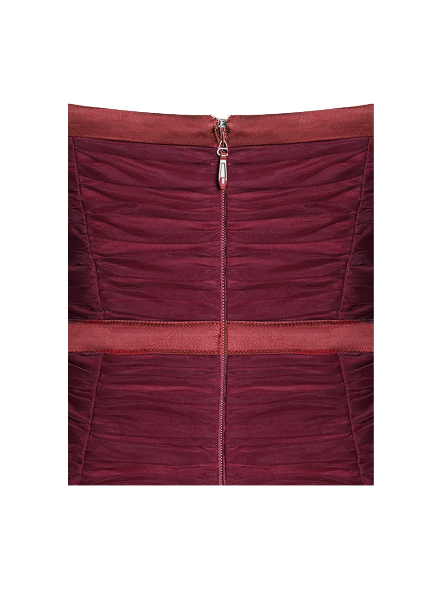 Turn heads with the whimsical elegance of the Mabel Dress. This enchanting burgundy creation features a charming drop waist design that flows into a voluminous layered mesh skirt, creating a striking midi puffy dress silhouette. The ruched top is adorned with a delicate satin bow tie, adding a touch of feminine sophistication. Fully lined for comfort and equipped with an invisible zipper for a seamless fit, the Mabel Dress is the perfect blend of romance and grace, making it an ideal choice for special occasions.