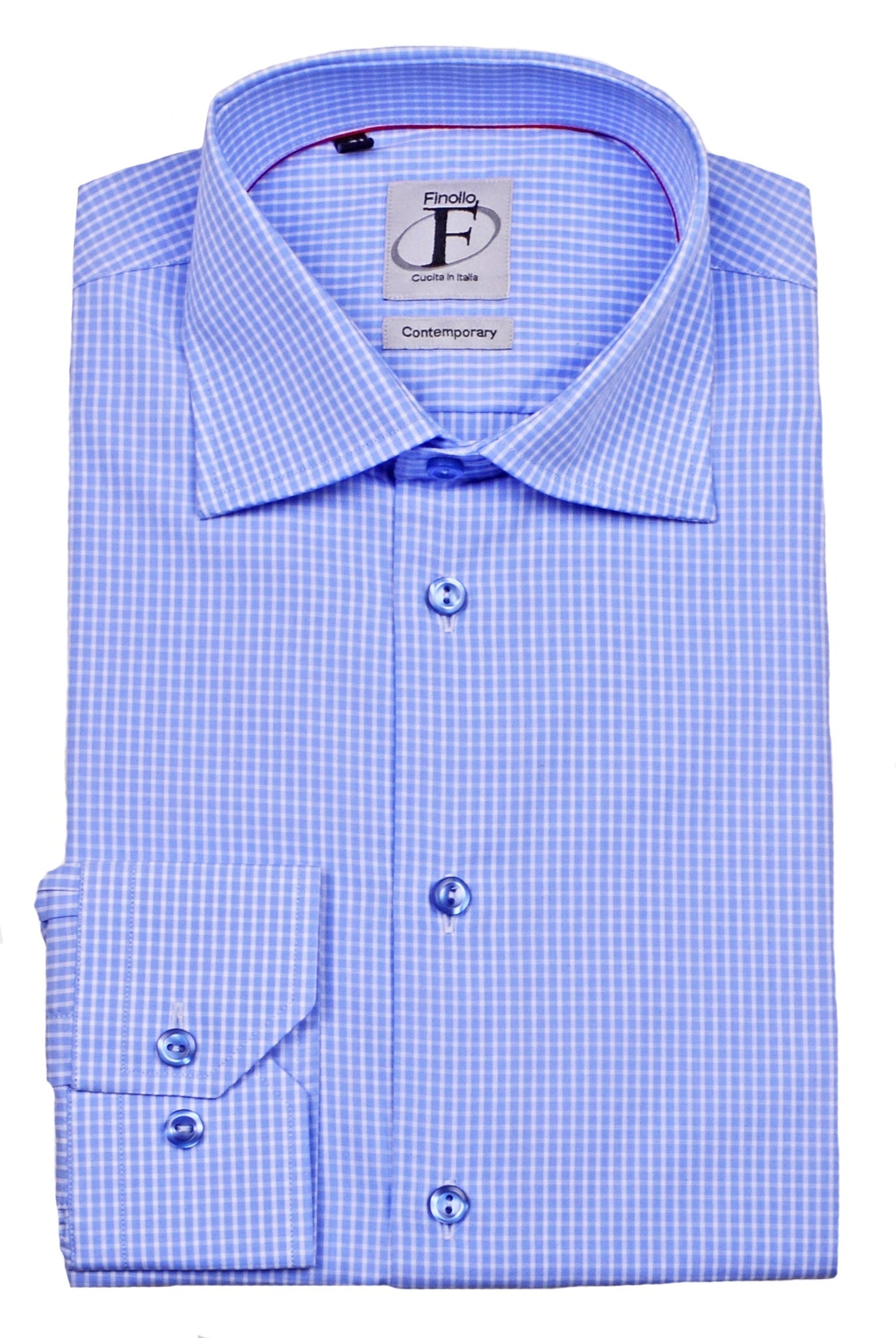Made in Italy Dress Shirts// Lt Blue check - contemporary fit