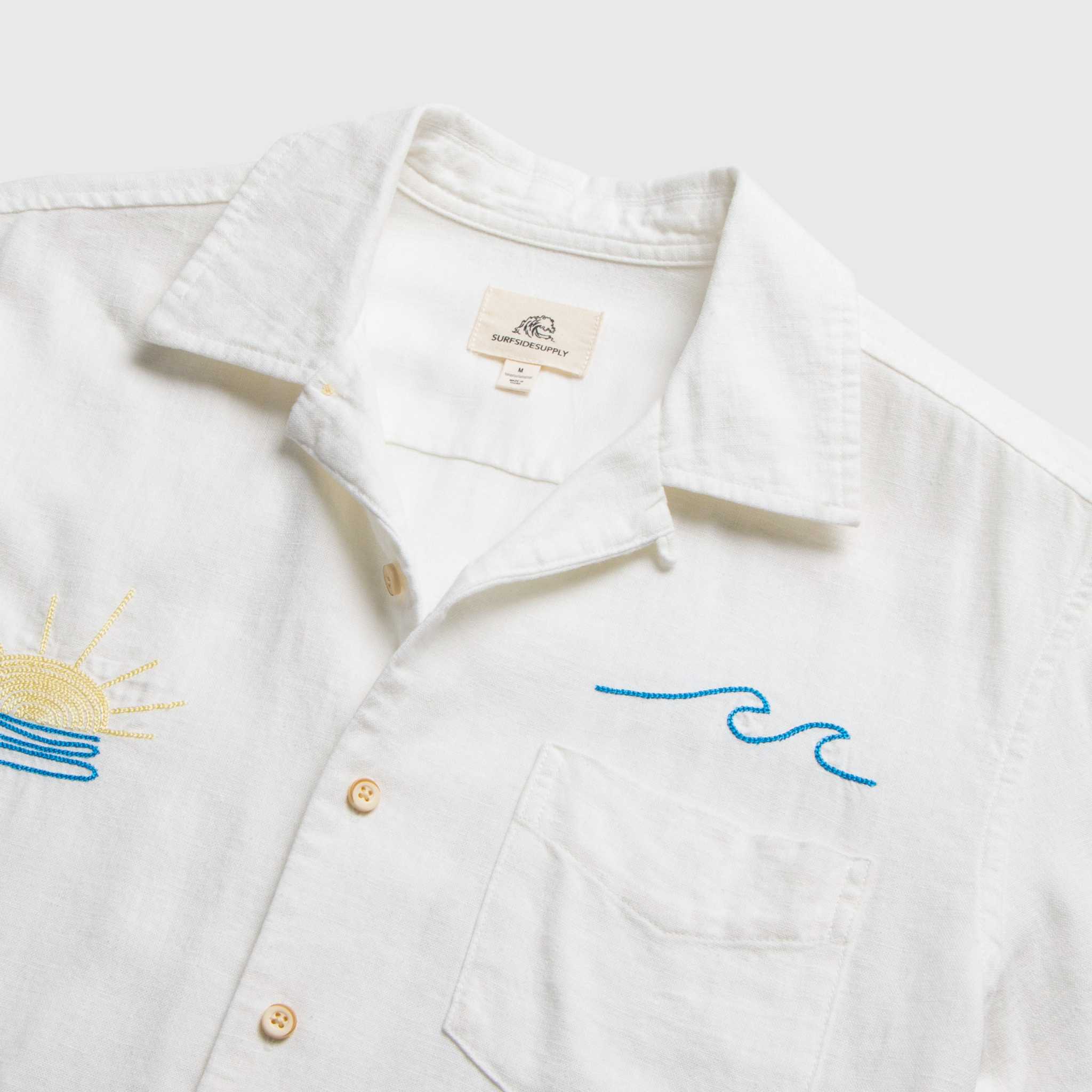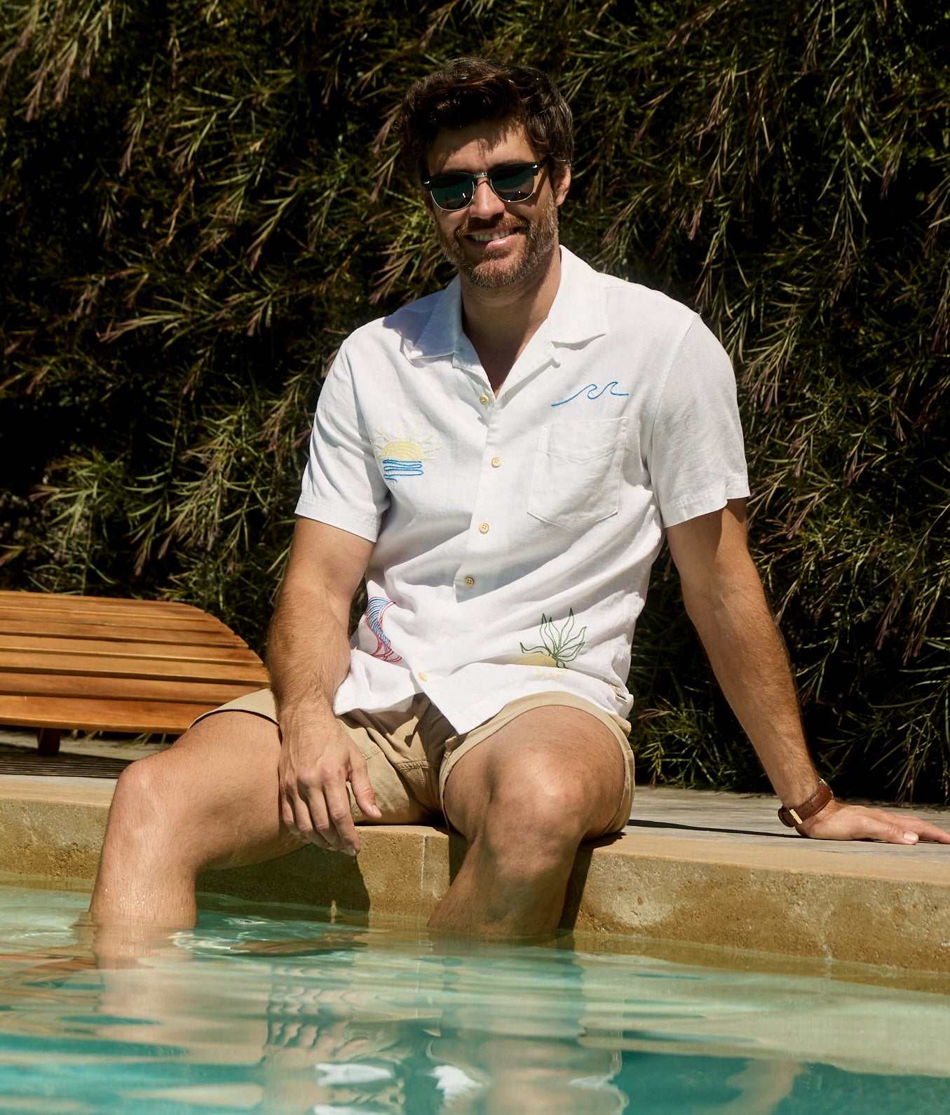 “Where did you get that shirt?” Get used to this question anytime you wear this exceptional button-up. Crafted in a soft breathable linen blend, the colorful embroidery throughout the front makes this one of the most unique items in your closet. A classic streamlined silhouette with short sleeves, straight hem, camp collar and single chest pocket. A must-have for all your upcoming social engagements and a perfect add to any vacation packing list.