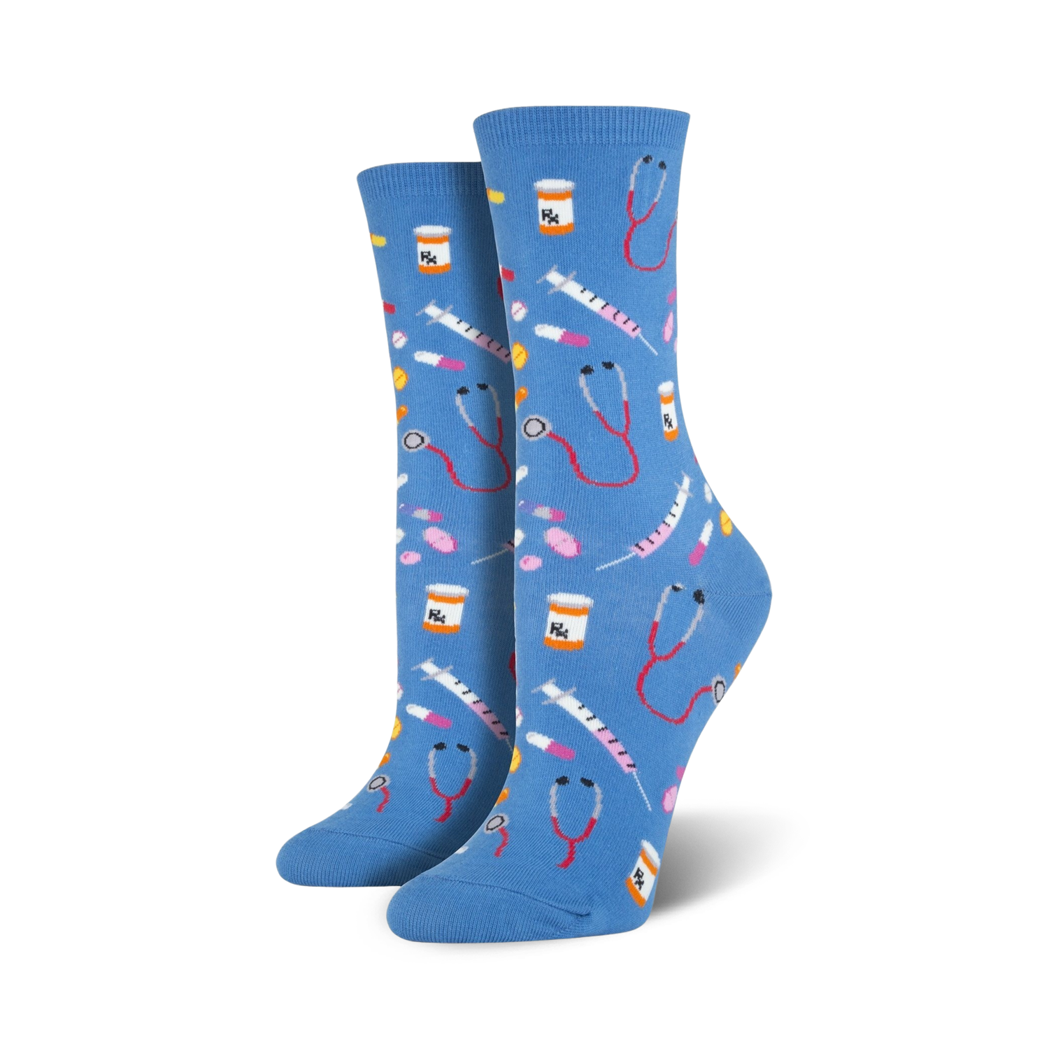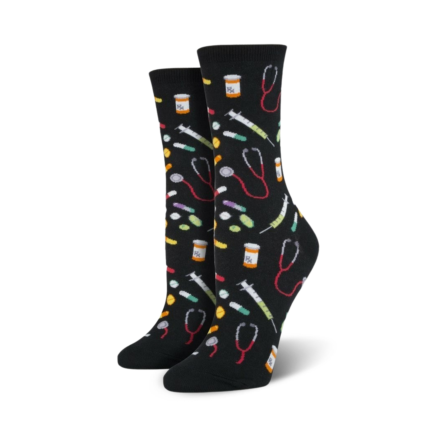 The next time you catch an episode of Grey's Anatomy or ER, get into the spirit of things and slip on a pair of these cool women's novelty crew socks. Each fun sock showcases different types of pills, syringes, stethoscopes, and prescription bottles printed all over against a black background. Gift these cool socks to your favorite doctor, nurse, or pharmacist!