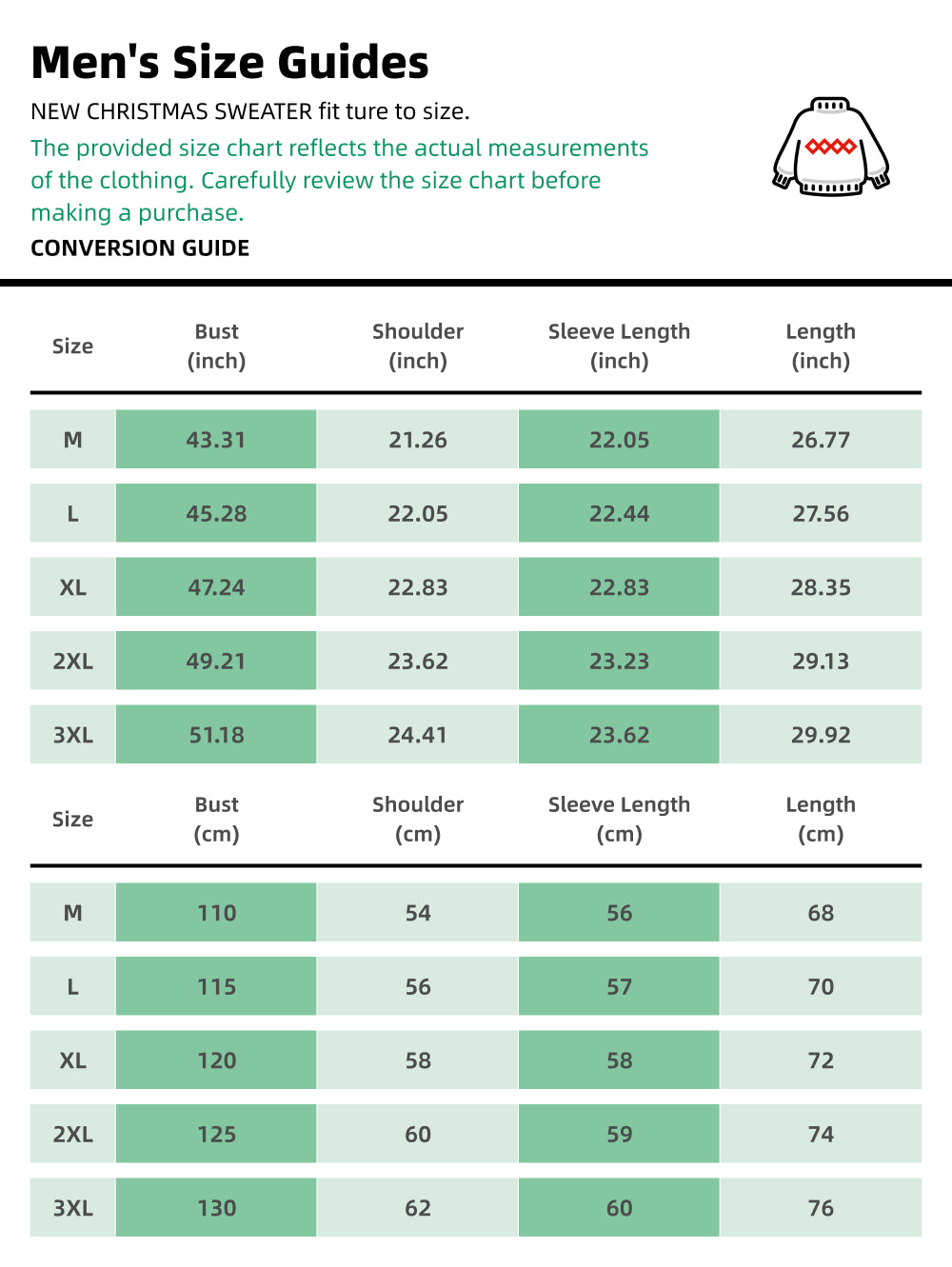 Check the Size Chart: The provided size chart reflects the actual measurements of the clothing. Carefully review the size chart before making a purchase.