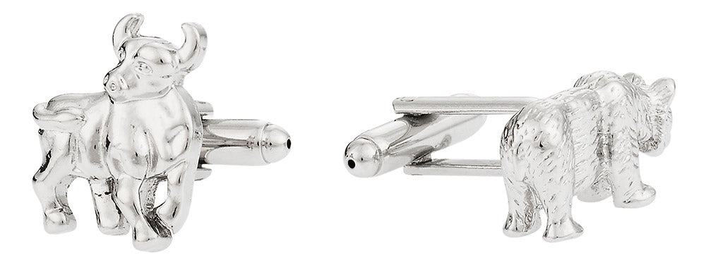 A great gift idea of cuflfinks for Dad, husband, or boyfriend these finance cufflinks already arrive in a gift box making them an easy gift. Show off your masculine power by slipping on these bull and bear cufflinks. They're both made in a silver tone and they feature a high level of detail. You'll feel powerful and strong while wearing these cufflinks, and that's the exact kind of confidence that you need when heading into an important meeting. They'll blend well with elegant formal wear, but they are fun enough to fit in more casual environments as well. This bull and bear set is versatile, and something that you'll pull out more than you think. Add a bit of life to your look with this pair, and you'll be eager to go out of the house just to show them off.