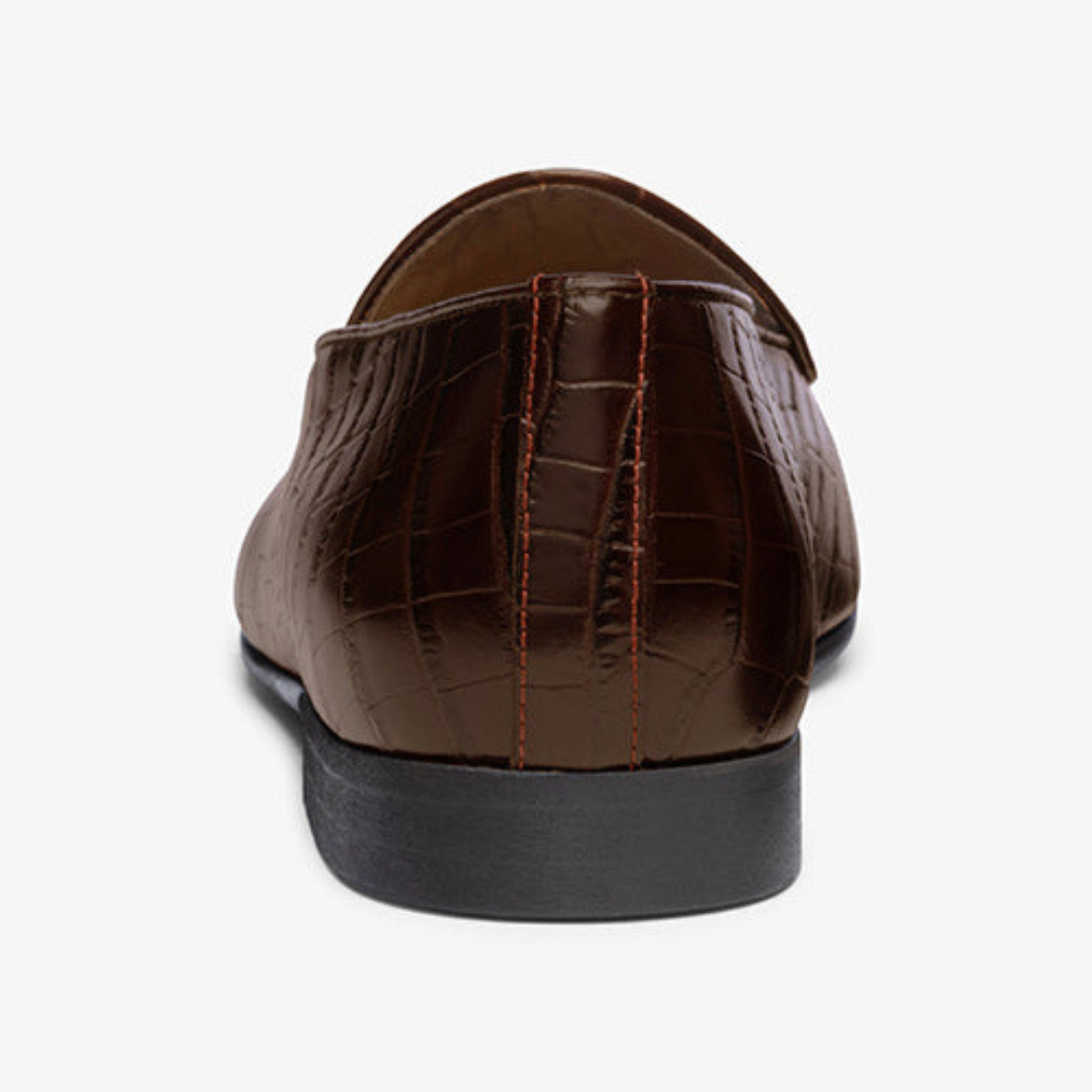 Introducing the Croc Milano Loafer - an elevated upgrade to our best-selling Milano Loafer. Featuring an extra soft croc-embossed calf upper construction, the Croc Milano feels as good as it looks. Hand-stitched signature Del Toro detailing on the forefoot complements the croc effect stripe on the heel, giving the shoe an elegant aesthetic with a bit of edge. A custom rubber sole adds elements of sophistication and sturdiness, giving the shoe a durable artisanal feel that is unique to the craftsmanship of our family of Italian shoemakers. Pair it with anything from a suit to jeans - these shoes are designed for the refined.