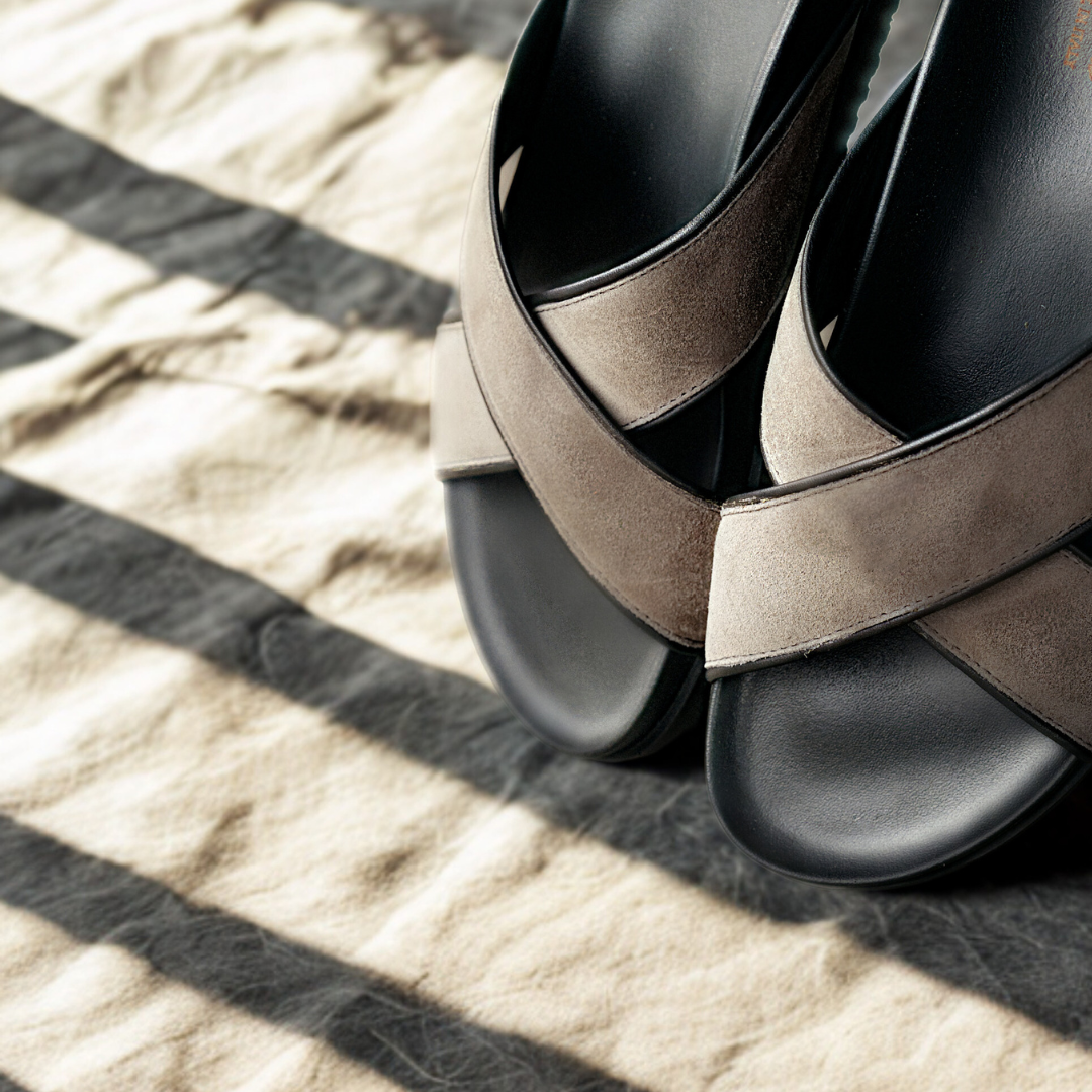 Introducing the Amalfi Crossover Sandal – a sophisticated warm-weather favorite. With an extra soft cushioned calf leather cross strap overlaid with supple high-grade Italian suede, the Amalfi Crossover Sandal takes stylish comfort to another level. The soft leather-wrapped footbed and textured rubber sole allow you to walk with the feeling of an airy and breathable lightness. Wear them with shorts, trousers, or even a suit – the Amalfi Crossover Sandal is versatile enough for any leisurely summer outfit.