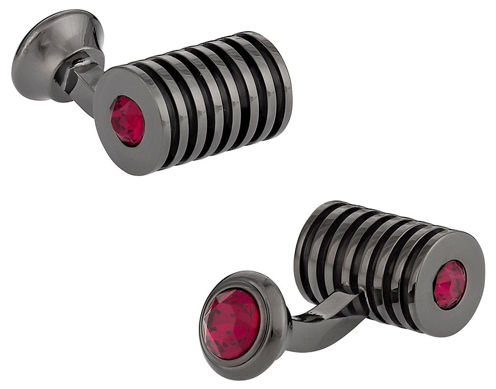 Finely grooved ribs form a uniform pattern on a gunmetal capsule that sticks out from Gunmetal Ruby Swarovski Barrel Cufflinks. Meticulously buffed gunmetal presents a somewhat worn look, without detracting from the appearance of these cufflinks. Crystallized Swarovski elements sparkle under the bright lights of a formal event. To top of this fashion accessory gem, our design team borrows from the hauntingly beautiful color of rubies to complement colorful formalwear shirts. Enjoy generous volume discounts by purchasing these cufflinks for the entire family.