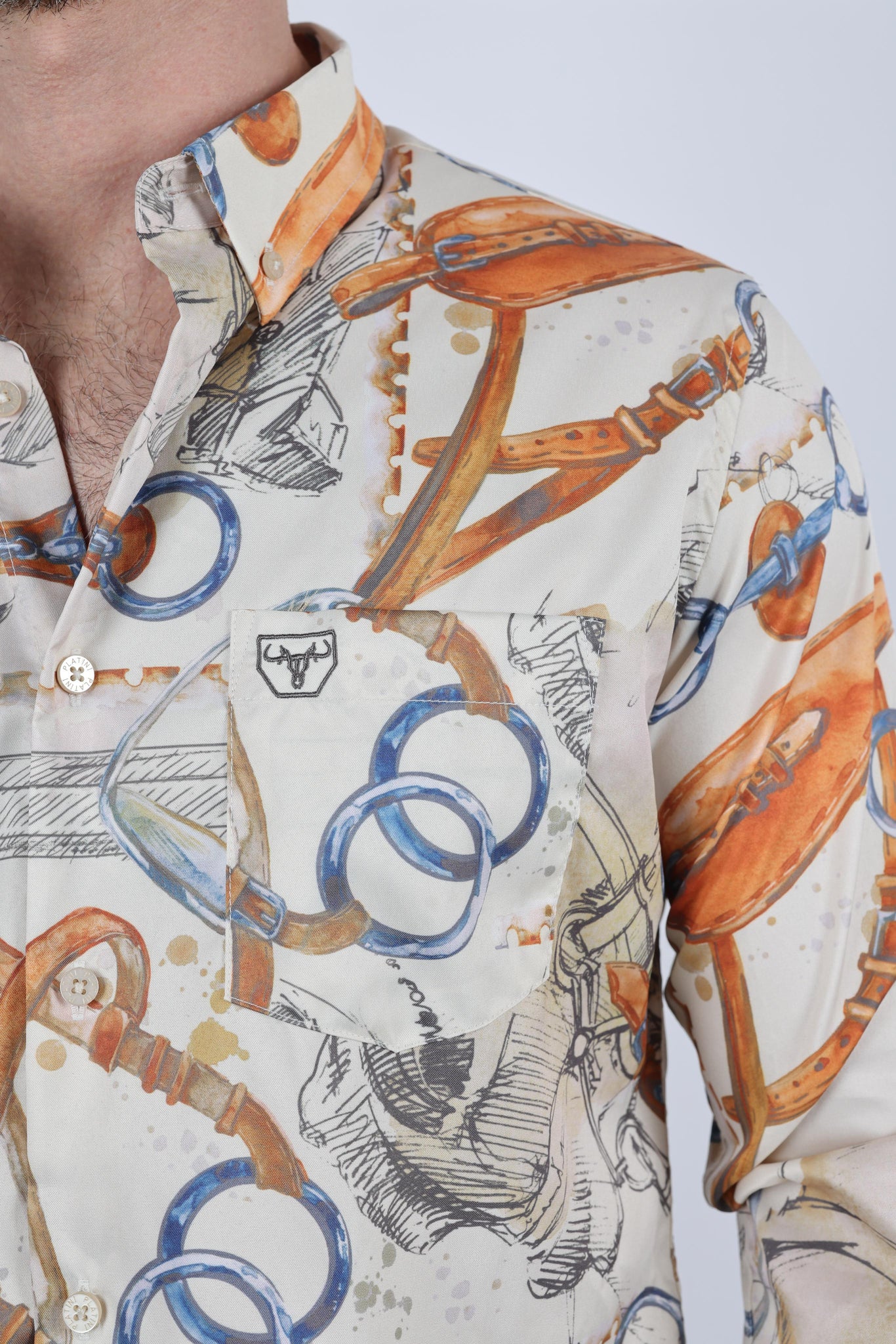 How to Wear: For a casual yet stylish look, pair this wild horses print shirt with dark denim jeans and leather boots. Layer it under a blazer for a more polished appearance, ideal for dinner dates or evenings out. Alternatively, wear it with chinos and loafers for a smart-casual ensemble perfect for weekend outings or gatherings with friends. Experiment with different accessories, such as belts or watches, to personalize your look and make a statement.