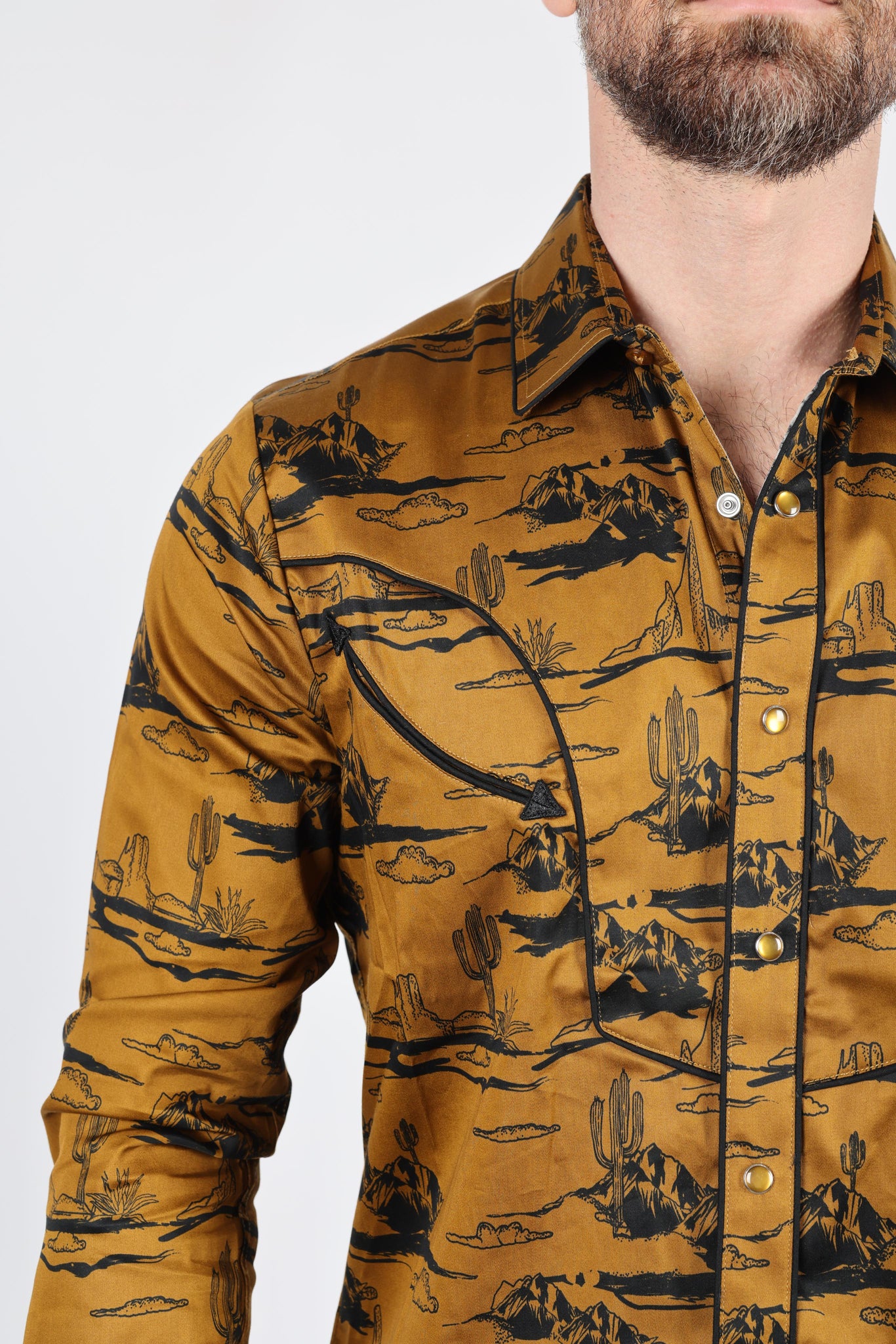 Description: Introducing our Men's Modern Fit Cotton Stretch Piping Cactus Monogram Print Shirt, a stylish addition to your wardrobe. Crafted from premium cotton with added stretch, this shirt ensures both comfort and style. The standout feature is the striking monogram print of cacti with subtle piping details, offering a unique and contemporary look.