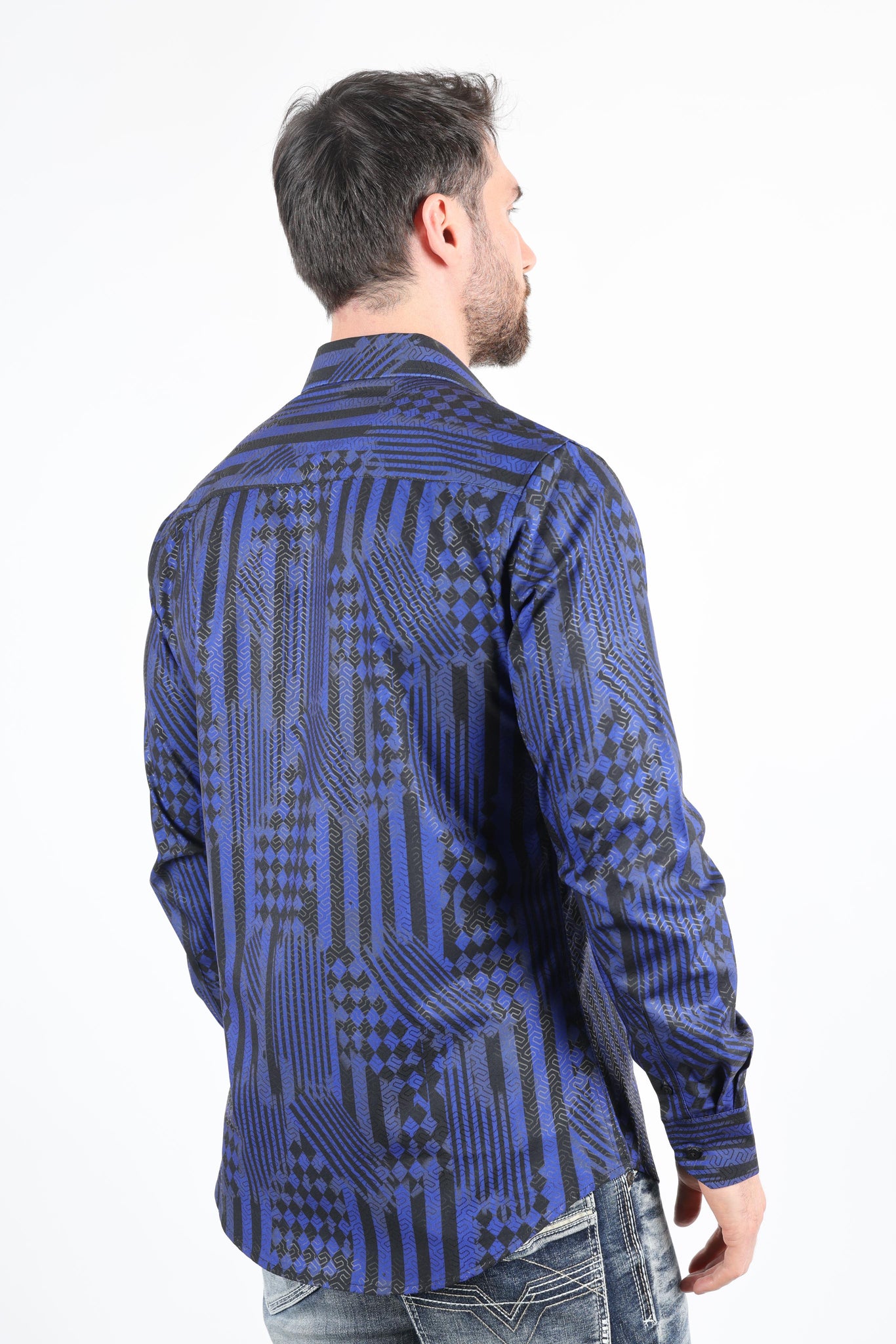 Description: Elevate your style with our Men's Modern Fit Stretch Foiled Shirt – a fusion of contemporary fashion and comfort. This Platini Jeans shirt boasts a captivating digital print that's sure to turn heads wherever you go. Crafted from durable fabric, this shirt is designed to offer lasting comfort and style through every season. The classic point collar adds a timeless touch to your ensemble.