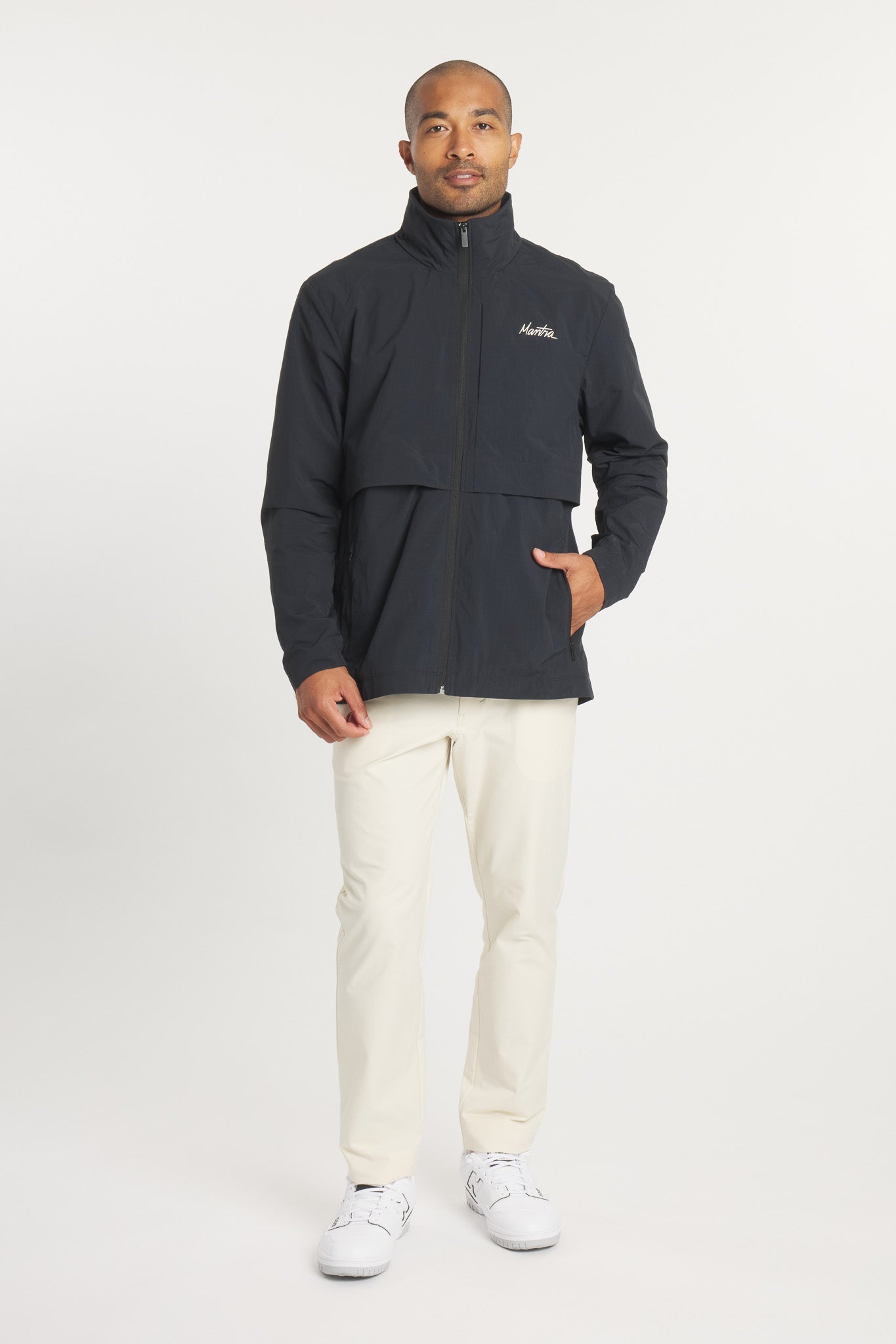For all the elements. Designed to keep you dry and warm for uninterrupted play. The Rain Jacket features mesh ventilation and a stowable hood. Relaxed Fit.