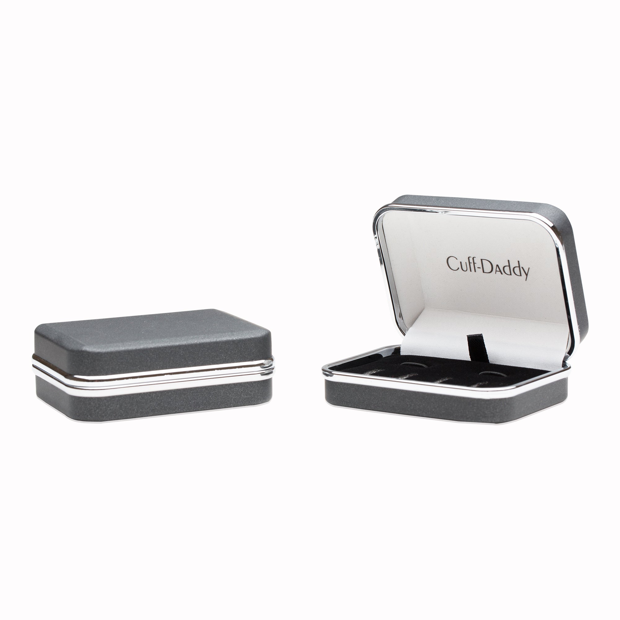 Finally, a larger set of black onyx gold cufflinks and studs to really make a splash. The cufflinks measure 3/4" across and the studs are just under 1/2" across. Arrives in a handsome gift box.