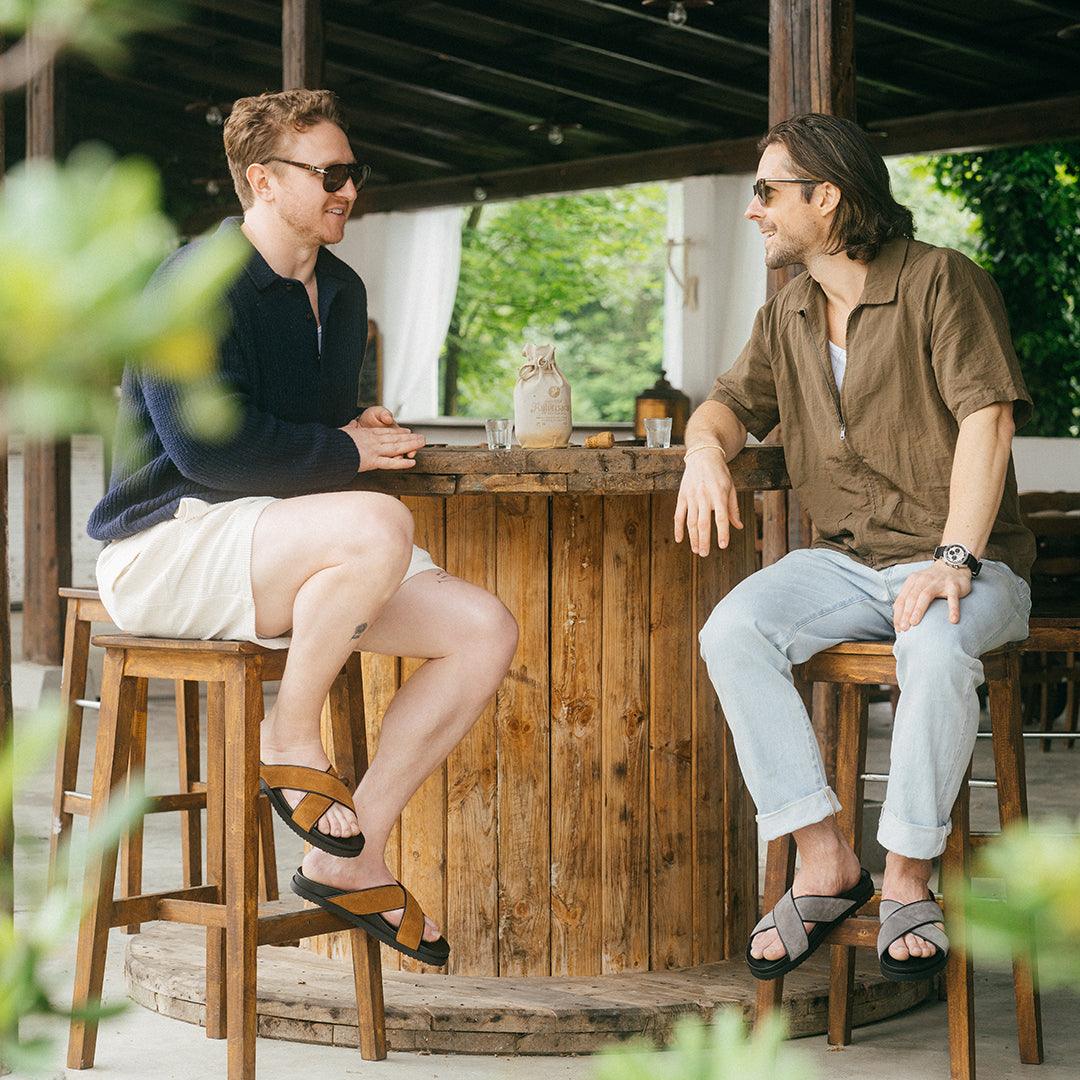 Introducing the Amalfi Crossover Sandal – a sophisticated warm-weather favorite.  With an extra soft cushioned calf leather cross strap overlaid with supple high-grade Italian suede, the Amalfi Crossover Sandal takes stylish comfort to another level.  The soft leather-wrapped footbed and textured rubber sole allow you to walk with the feeling of an airy and breathable lightness.  Wear them with shorts, trousers, or even a suit – the Amalfi Crossover Sandal is versatile enough for any leisurely summer outfit.