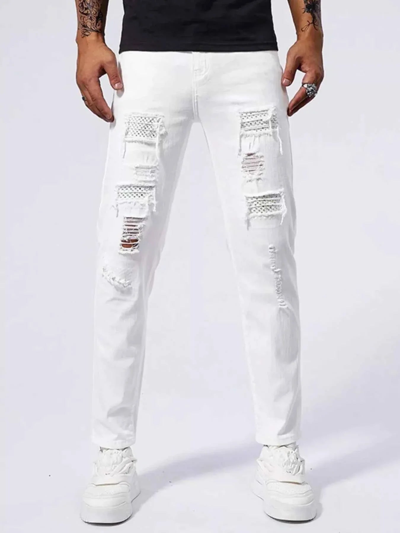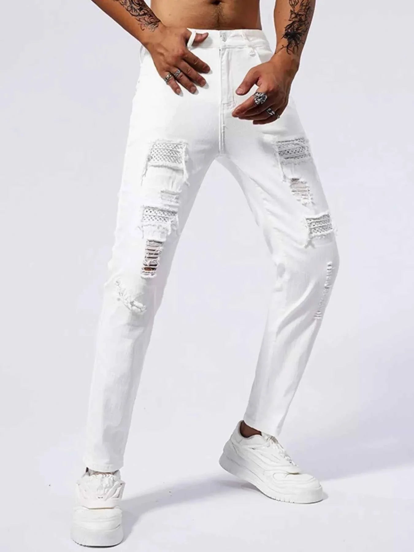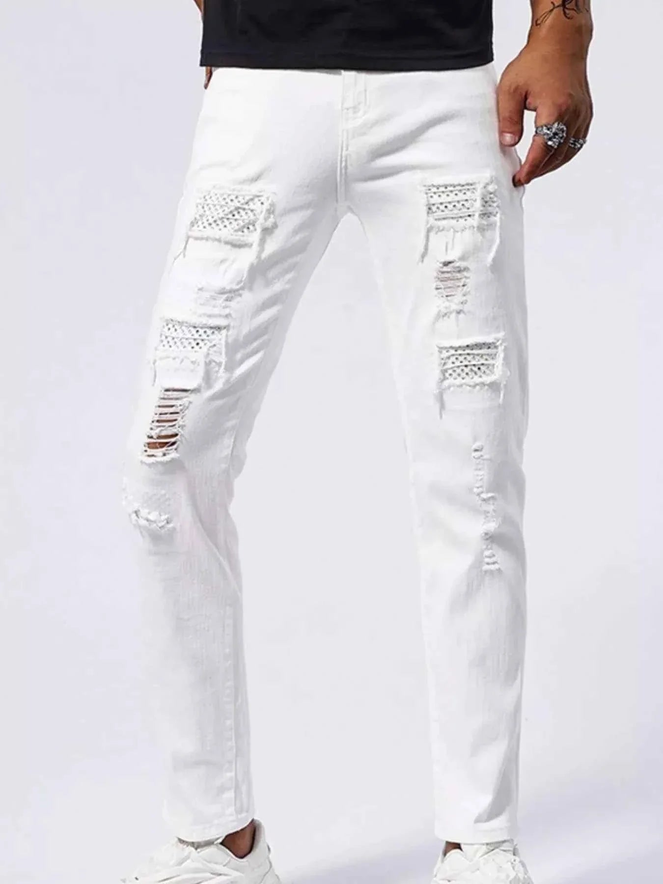 Crafted from high-quality denim, these jeans promise durability alongside flexibility. The fabric's softness ensures all-day comfort without compromising on style. Intricately designed distressed details add a touch of rugged elegance, ensuring you stand out effortlessly.