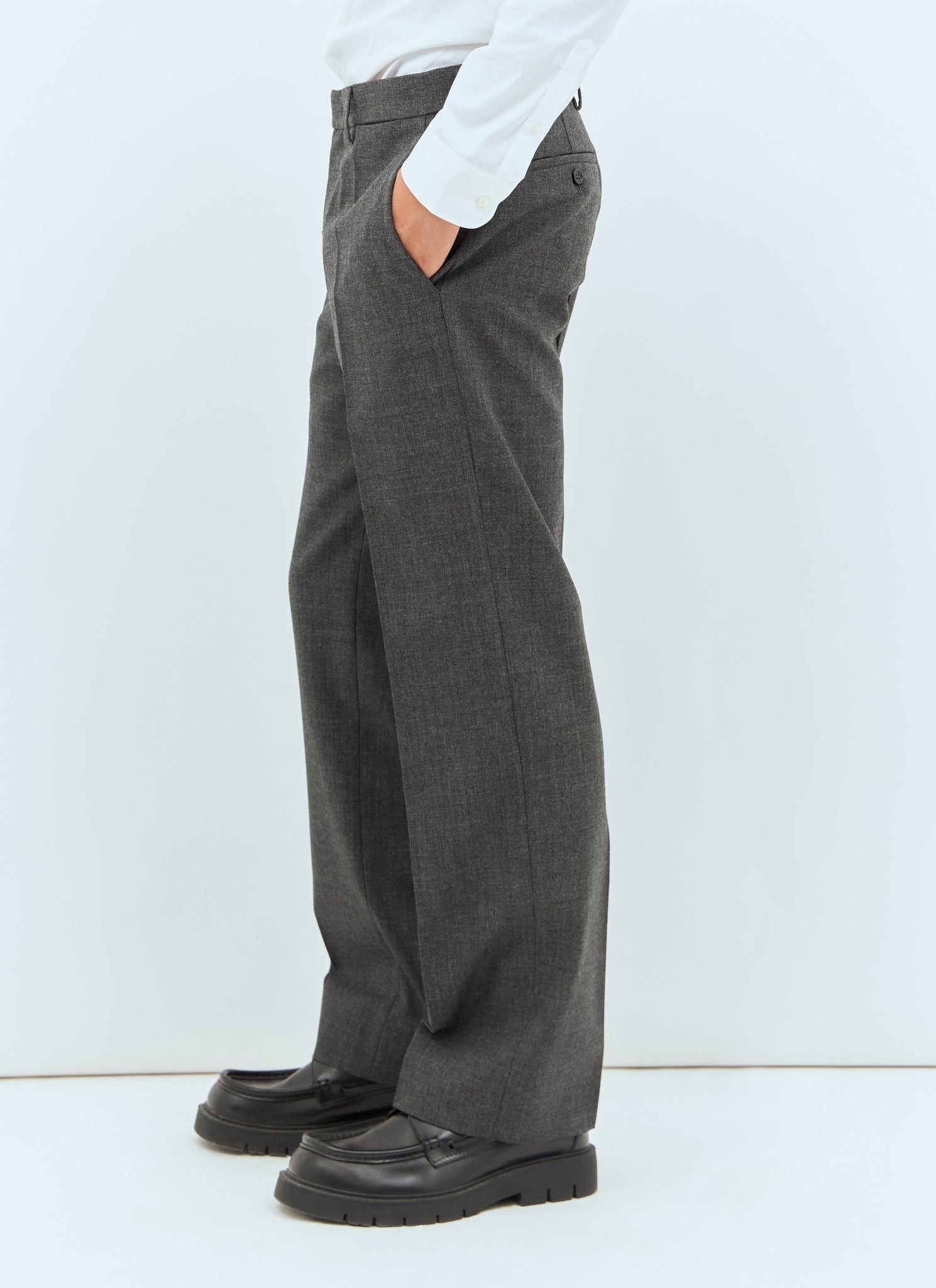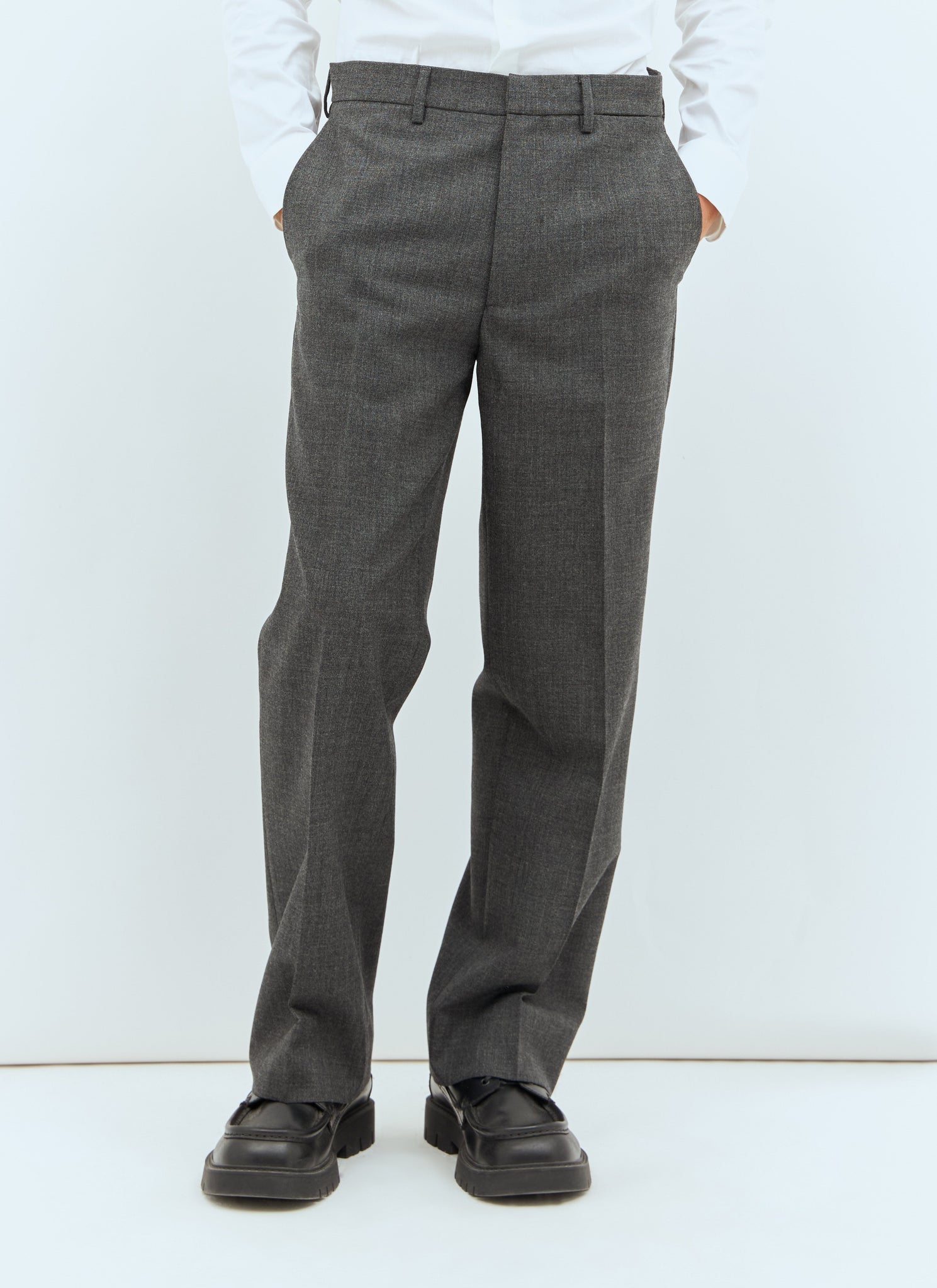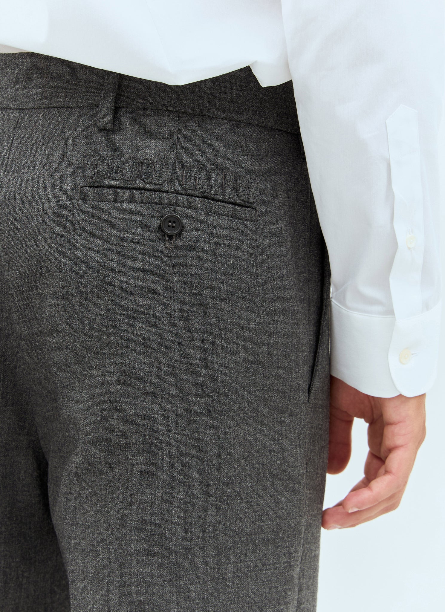 Marled wool pants with rear logo patch.