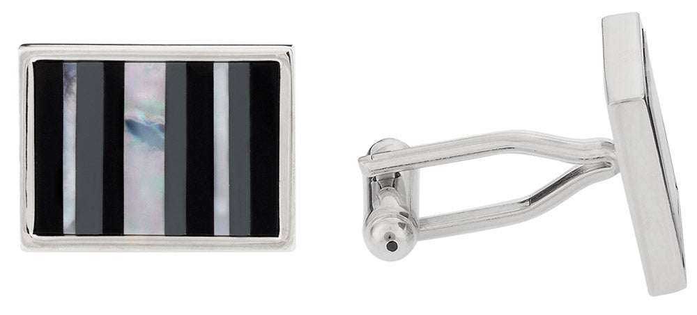 The Mixed Media Cufflinks have all the properties of a must-have pair of cufflinks. The rectangular rhodium-silver mount is where stripes that differ one from another in shape, color, shade and material are placed to form a hypnotic design that shouts sophistication and elegance. The smoothly textured gemstones, the radiant white of mother of pearl and brightly polished silver make this pair of cufflinks marvelous, and can be easily matched with your elegant outfit. Meticulously made and backed up by a great product warranty, these cufflinks are waiting to become part of your collection!