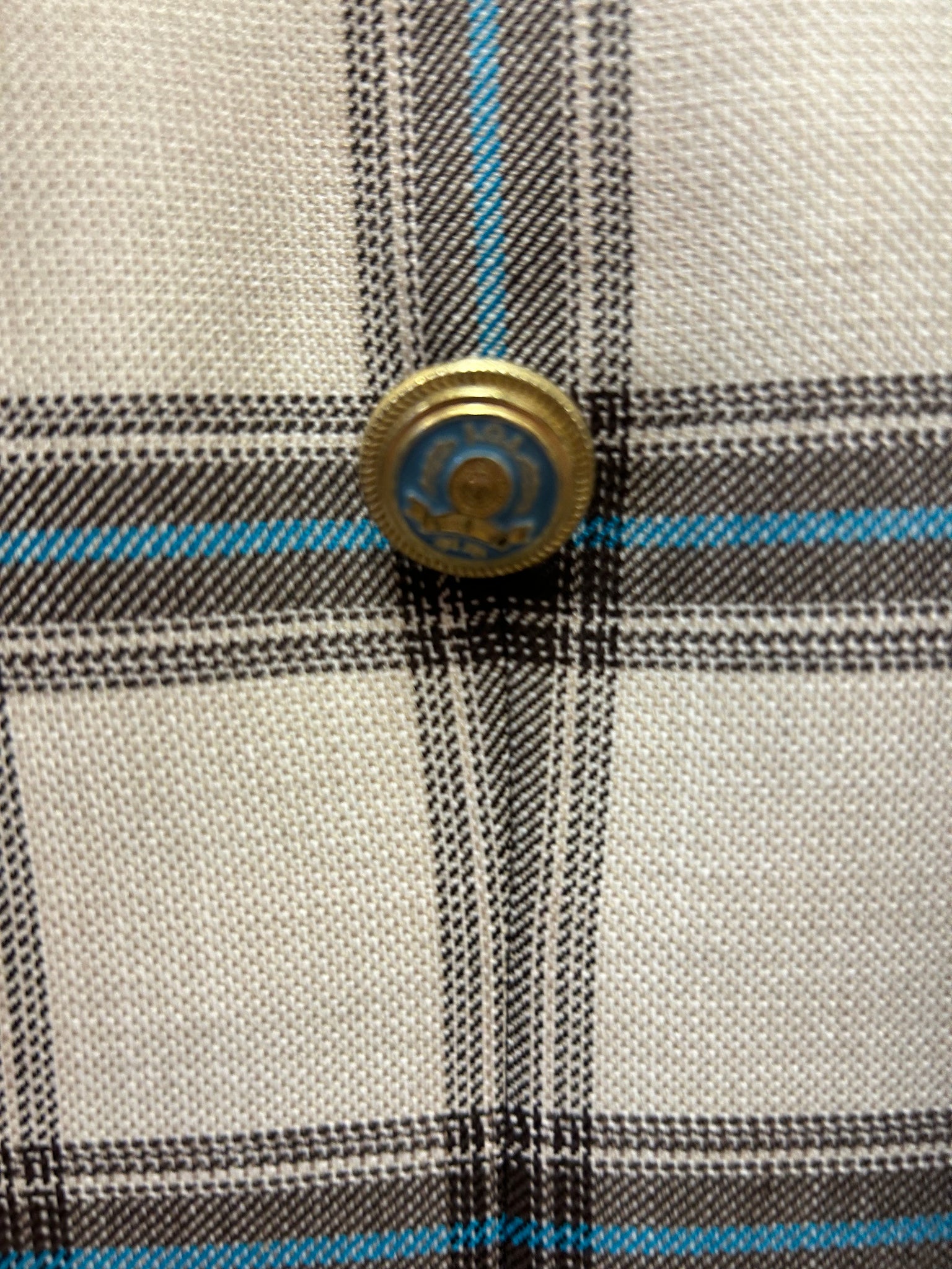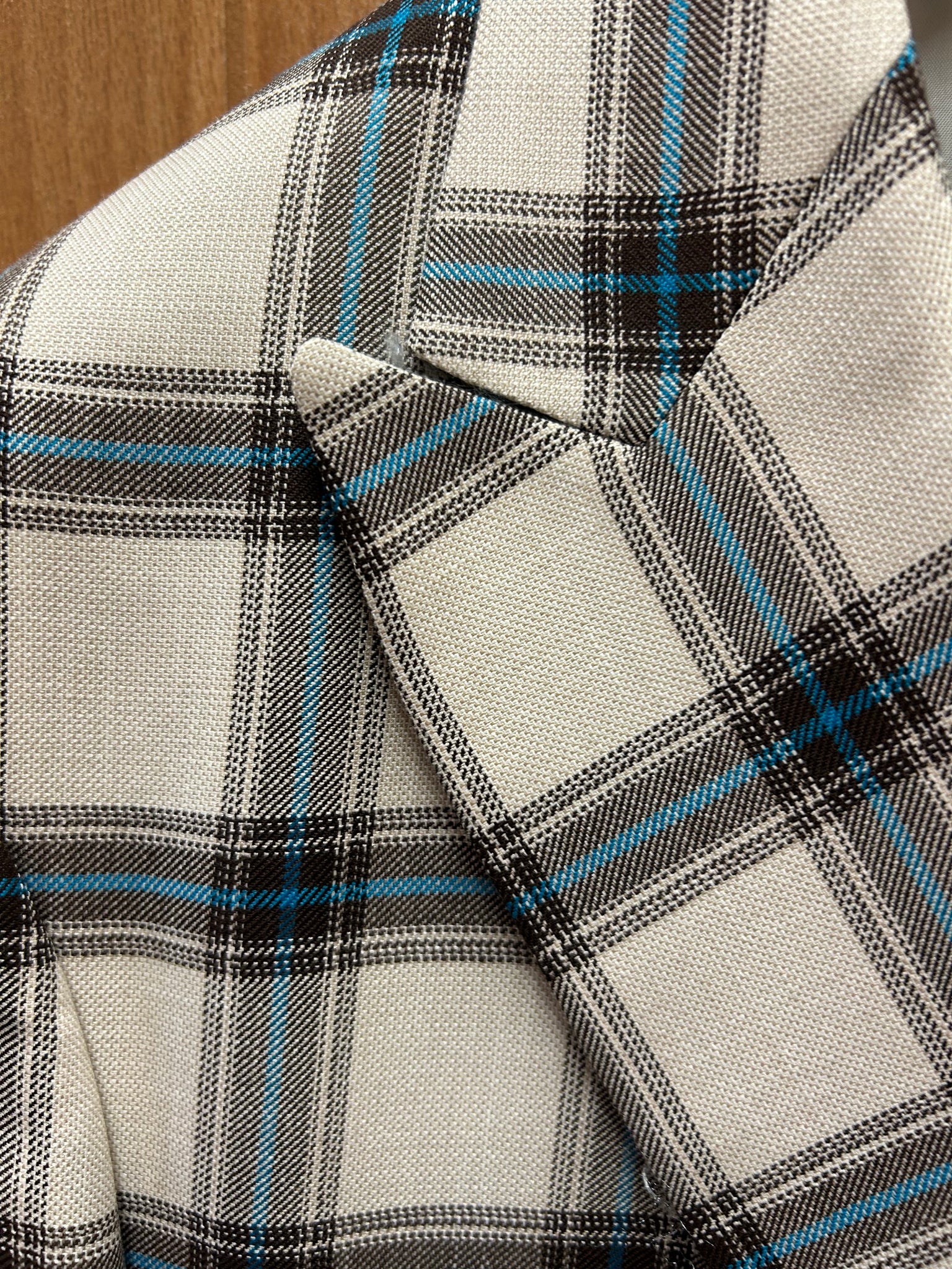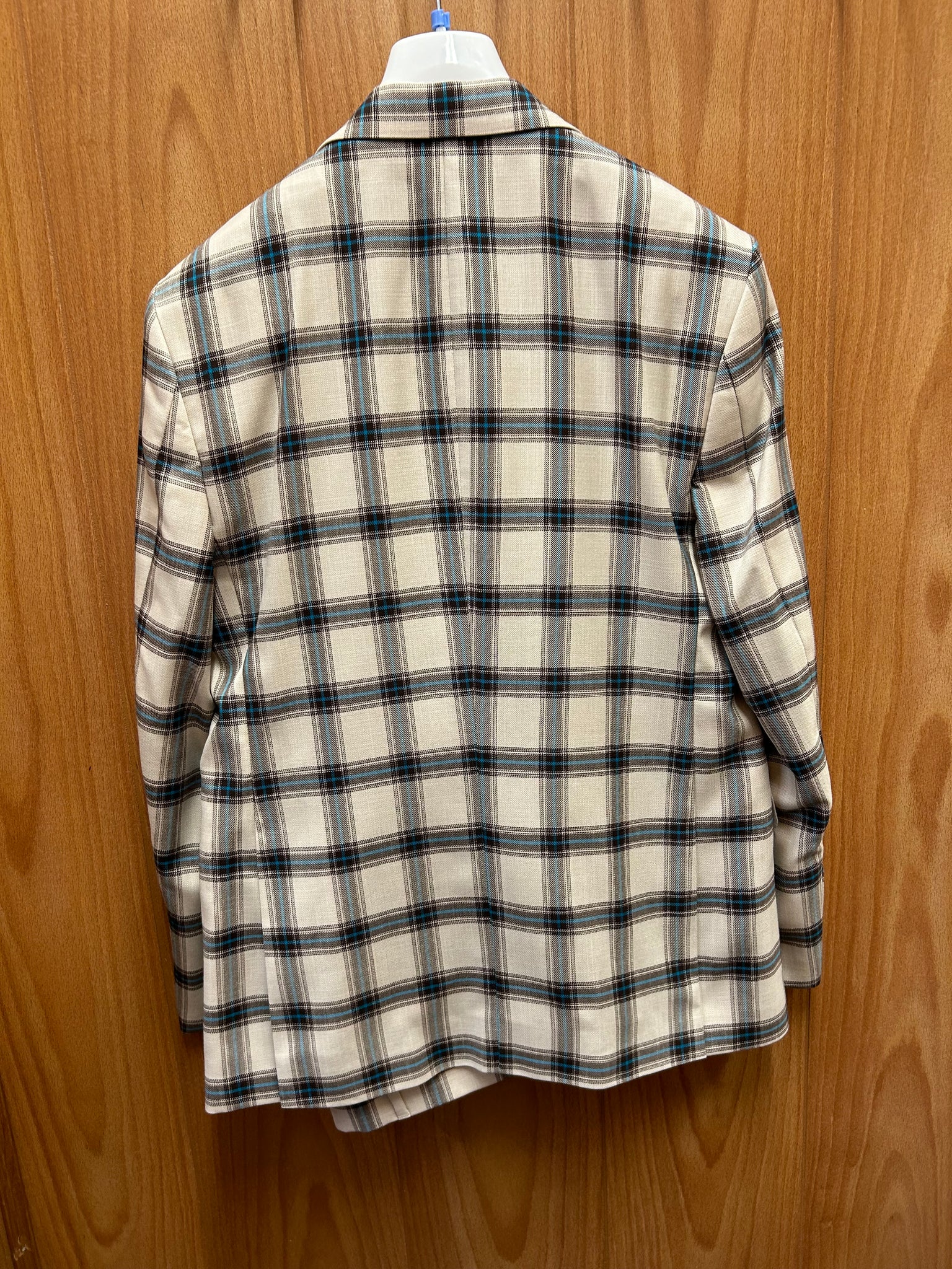 Indulge in luxury with our Moda Color Turkish Cream/Brown/Turquoise Suit. Made in Turkey with 100% super 180’s wool, this double breasted suit boasts exquisite features such as gold buttons and a bold checkered pattern. Pairing peak lapel with slim fit flat front pants, this suit is perfect for the sophisticated gentleman.