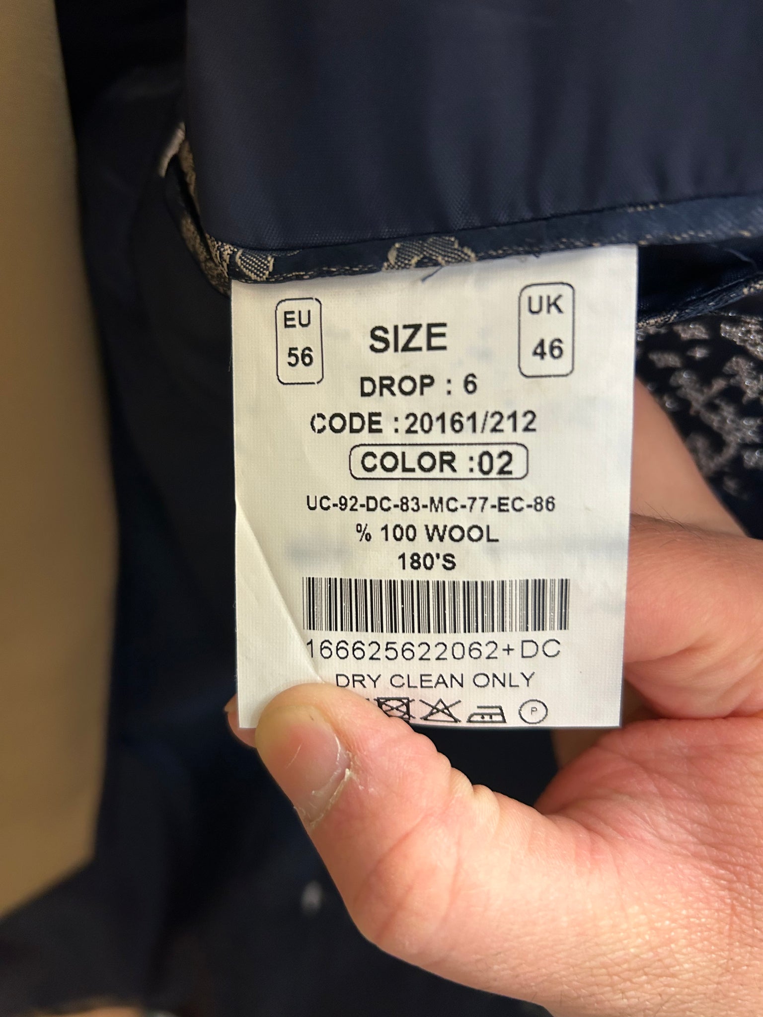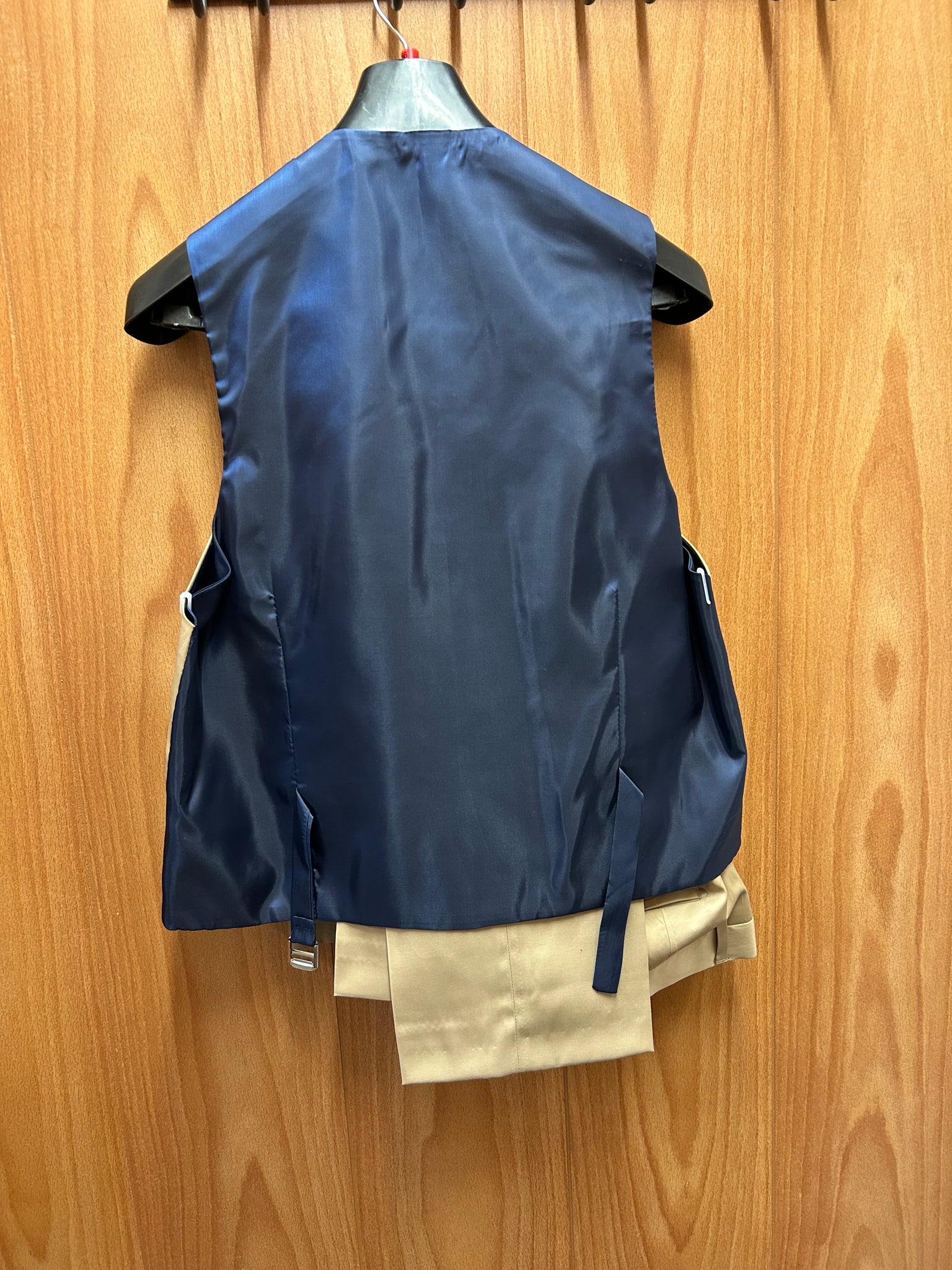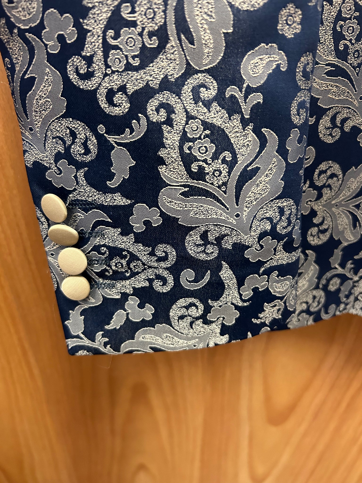 Look sharp and sophisticated with the Moda Color Exclusive Navy with Tan Paisley 3-Piece slim-fit Suit. Made from luxurious super 180's wool, this Turkish slim fit suit features a unique navy and tan paisley print jacket with a big shawl lapel and side vents. The solid tan vest and pre-hemmed pants complete the stylish look. Exclusively from the Moda Color collection.